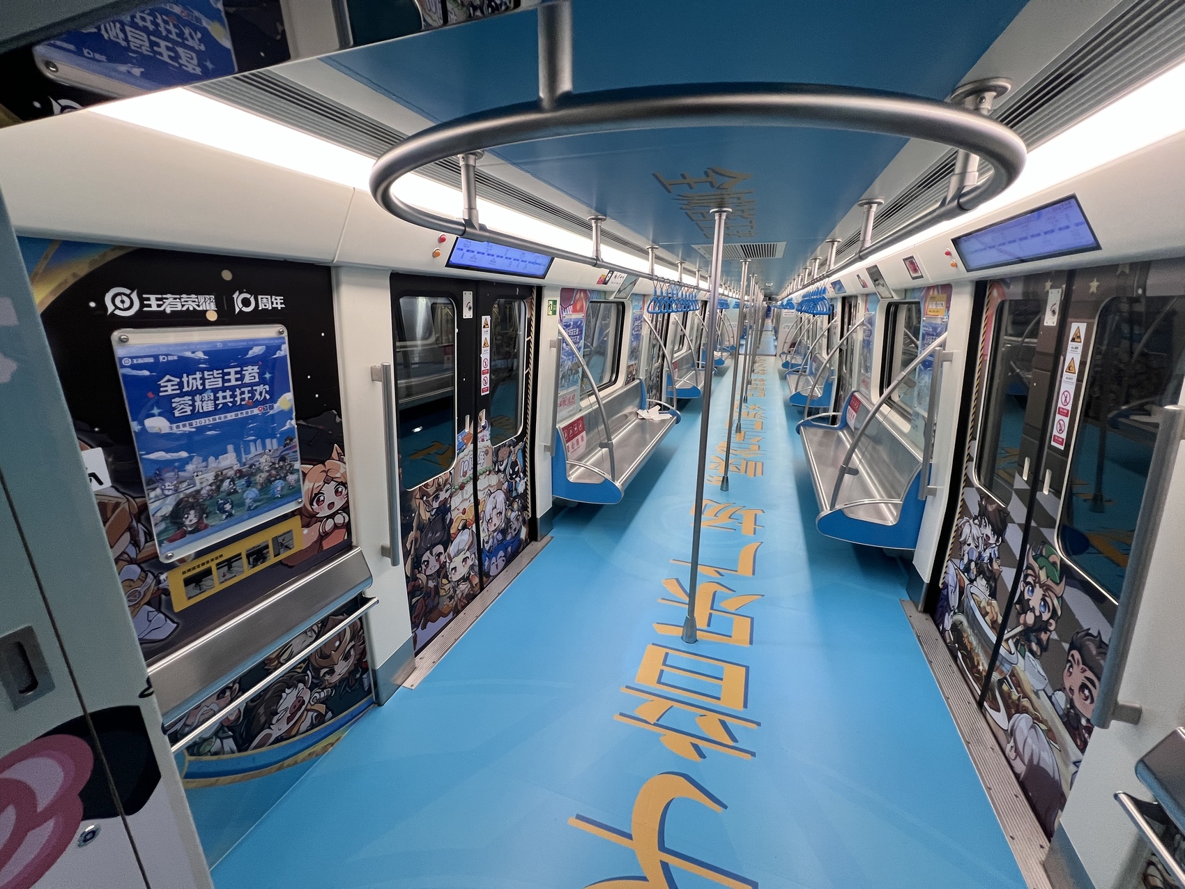 作为2015年诞生于成都的“顶流IP”,“王者荣耀”全球用户已超2亿。在其十周年庆典之际,成都地铁在1号线上线“王者荣耀”主题专列,邀请市民“搭地铁、坐专车”,解锁城市中的王者“彩蛋”。