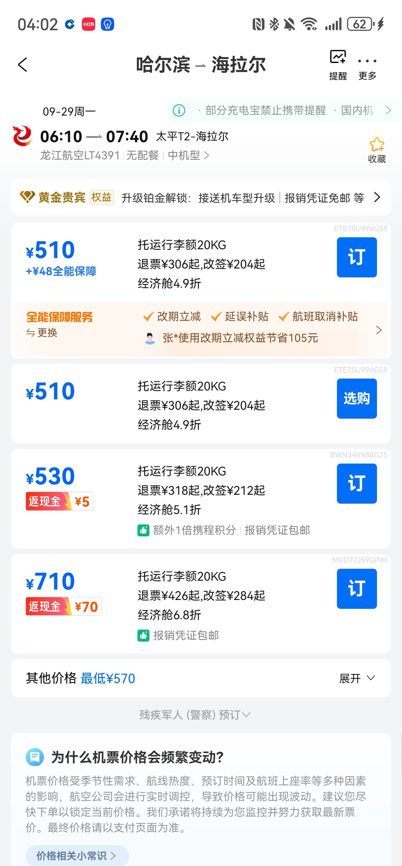 飞常准显示,从9月27日到10月3日,该航班的计划时间由21:55—23:10变更为06:10—07:40。记者在相关订票平台查询发现,由龙江航空执飞的该条航线,显示从哈尔滨太平机场起飞的时间为6:10。