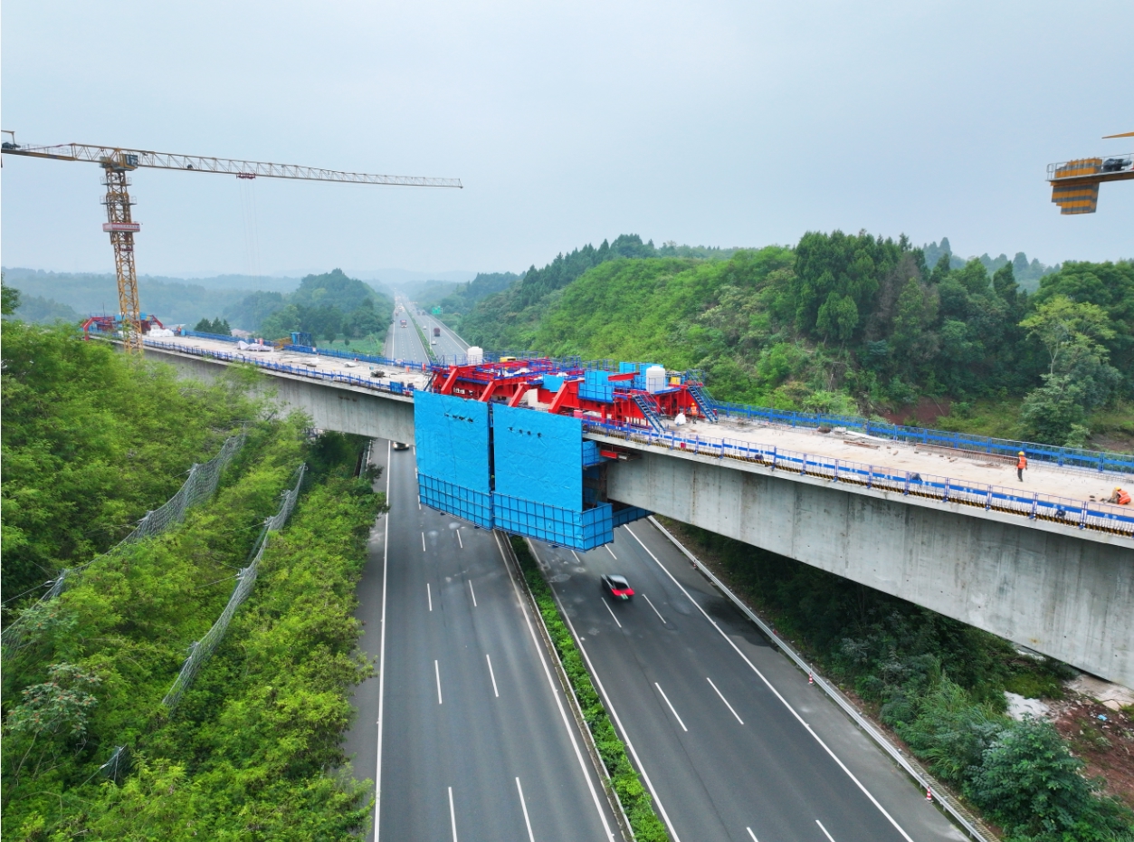 在施工方法上也有不少创新。四川路桥成渝中线高铁6标项目经理甘生俊介绍,施工中使用了全封闭的造桥机进行悬臂浇筑,并配备智能同步控制系统,保证结构受力平衡;借助BIM技术和三维视频交底,把平面图纸变成立体模型,让技术指导和施工预演更直观、更精准;同时还应用了智能张拉压浆、线形自动监测和自动喷淋养护等系统,实现了关键环节的智能化管理和混凝土养护的精细控制。