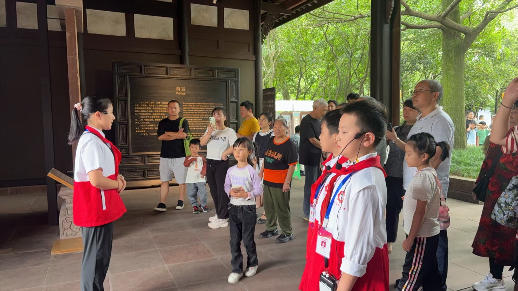 图为“苏娃”红领巾志愿者在三苏祠为游客义务讲解“三苏”故事。