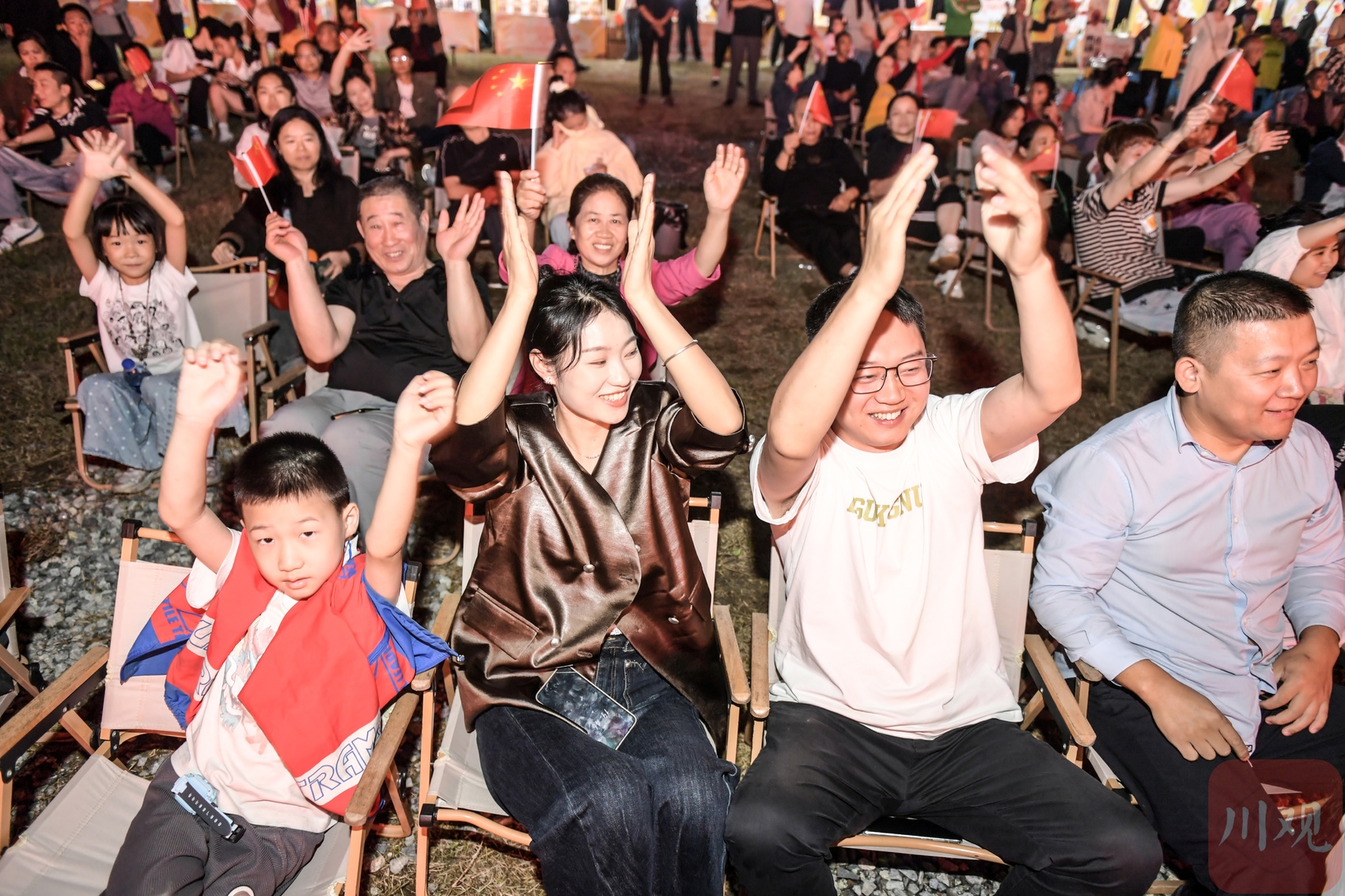 10月1日晚,成都新都高新技术产业园区的沐光森林营地灯火璀璨,银杏与桂树交织,勾勒出“林中有景、景中有灯”的唯美画卷。众多游客徜徉其间,看“川味大戏”、品30多种四川美食,感受国庆、中秋“双节”的喜庆氛围。