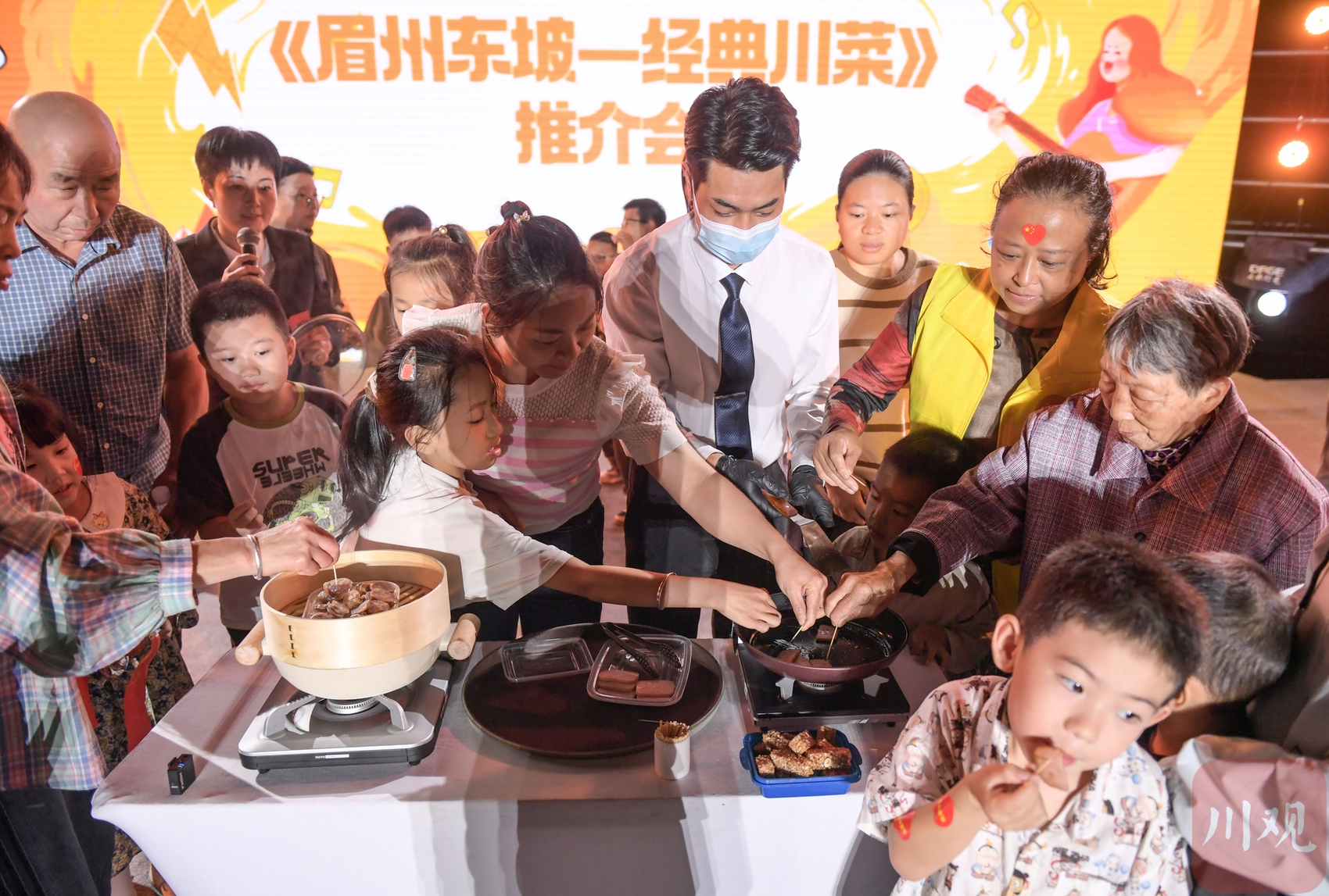 2025年10月1日晚,在成都新都高新技术产业园区沐光森林营地,游客在“成都新都区第二届银杏林下音乐嘉年华”活动中品尝川菜“眉州东坡”。
