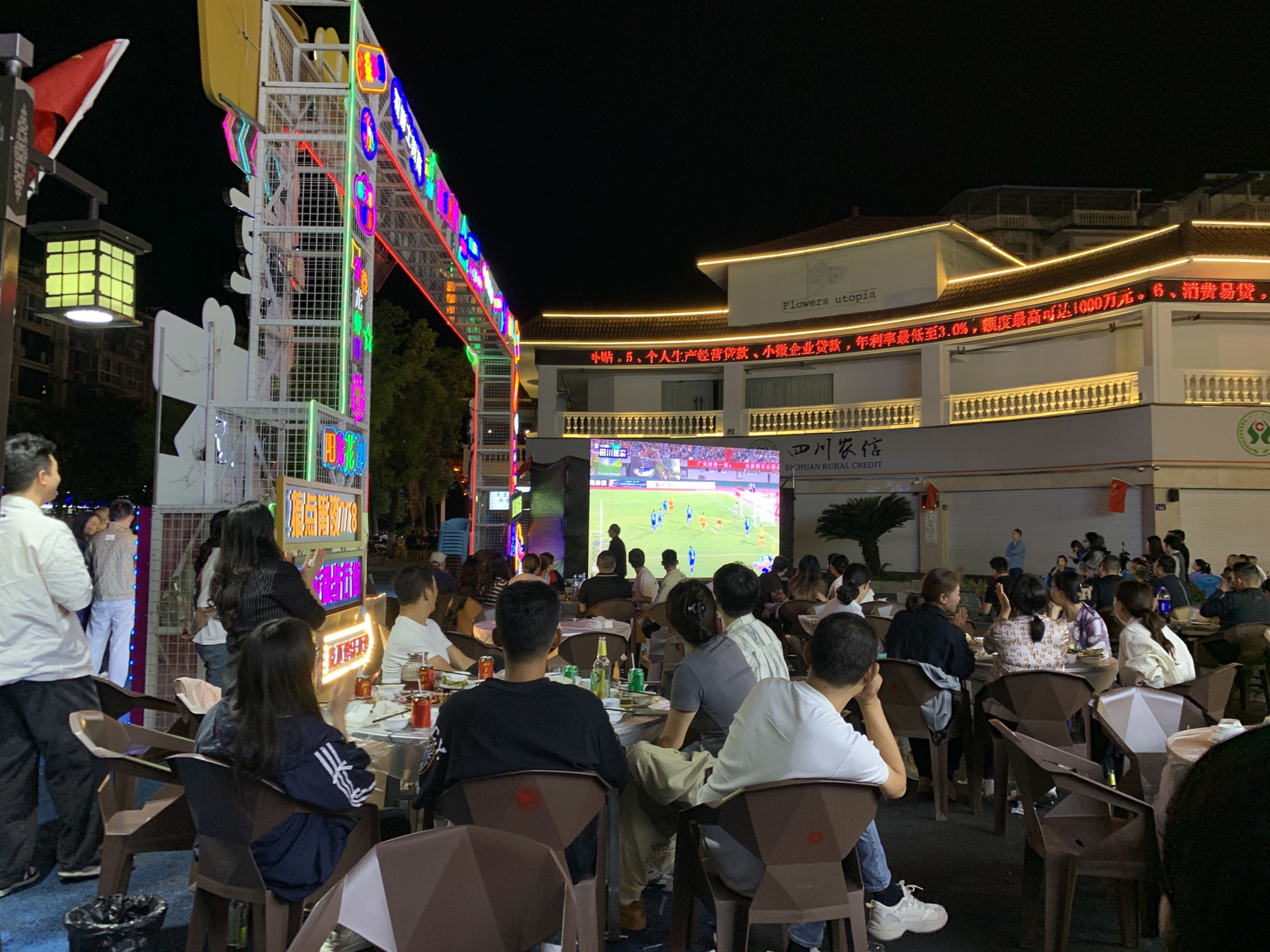 这是资阳设置的“第二现场”观赛点,在街区、广场的大屏,球迷们共同为家乡球队呐喊助威。