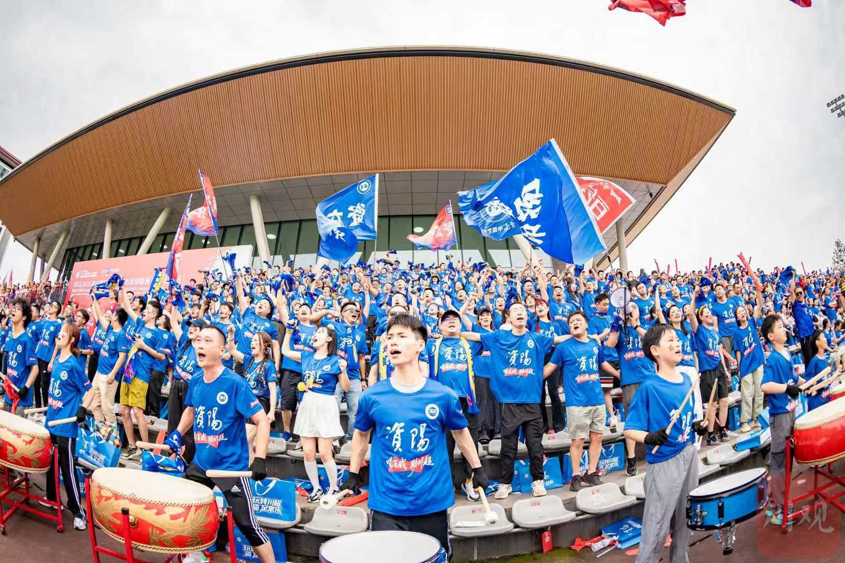 资阳球迷为自己的球队加油呐喊。(吴昊江 摄影)