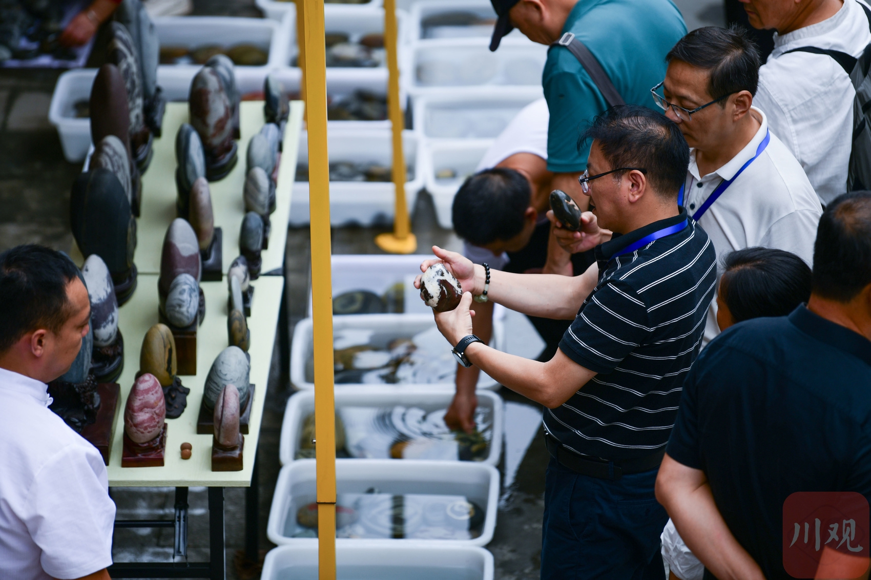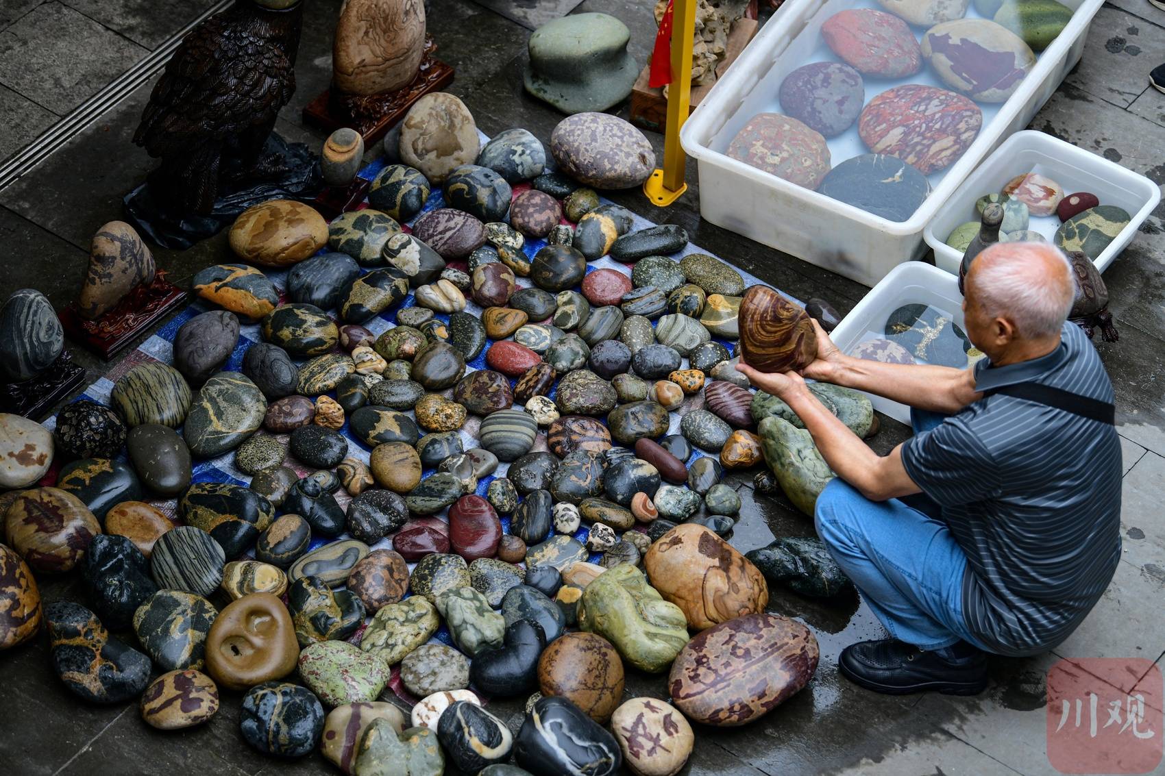 奇石爱好者正在选购奇石。