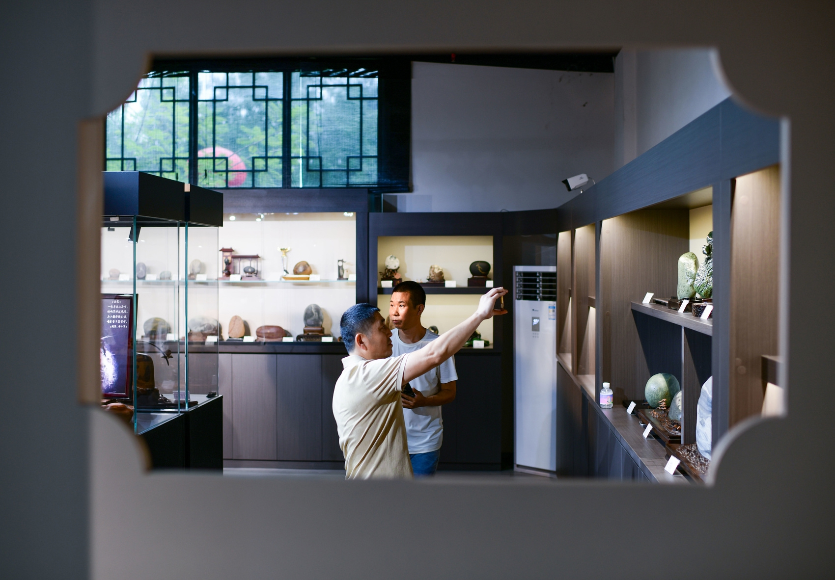 爱好者正在鉴赏奇石。