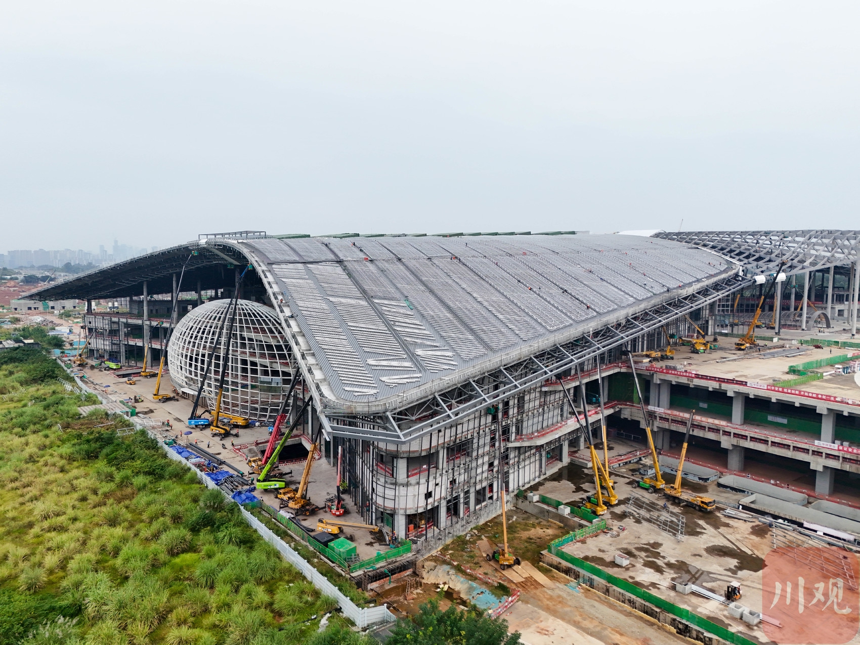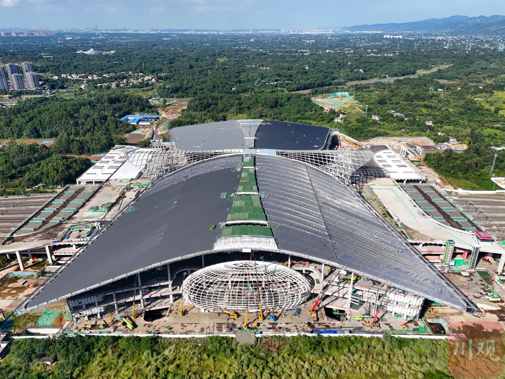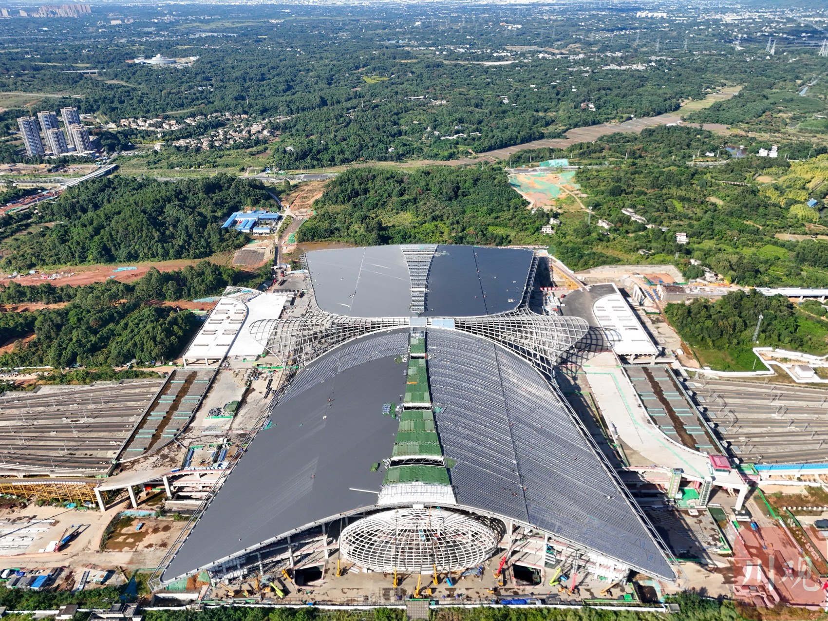 国庆期间,成都天府站国庆不停工,800余名建设者坚守岗位。