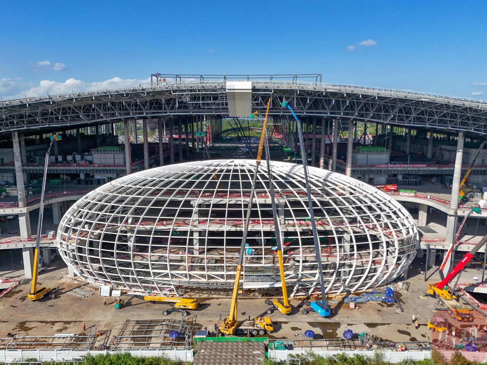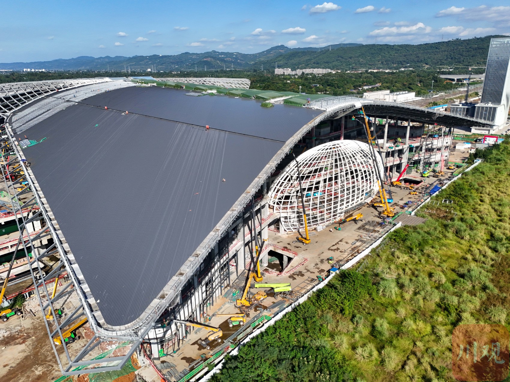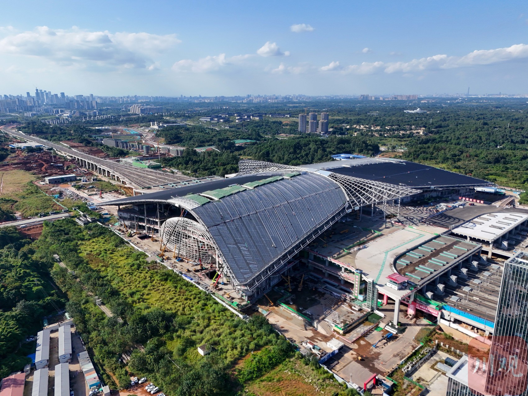 国庆期间,成都天府站国庆不停工,800余名建设者坚守岗位。