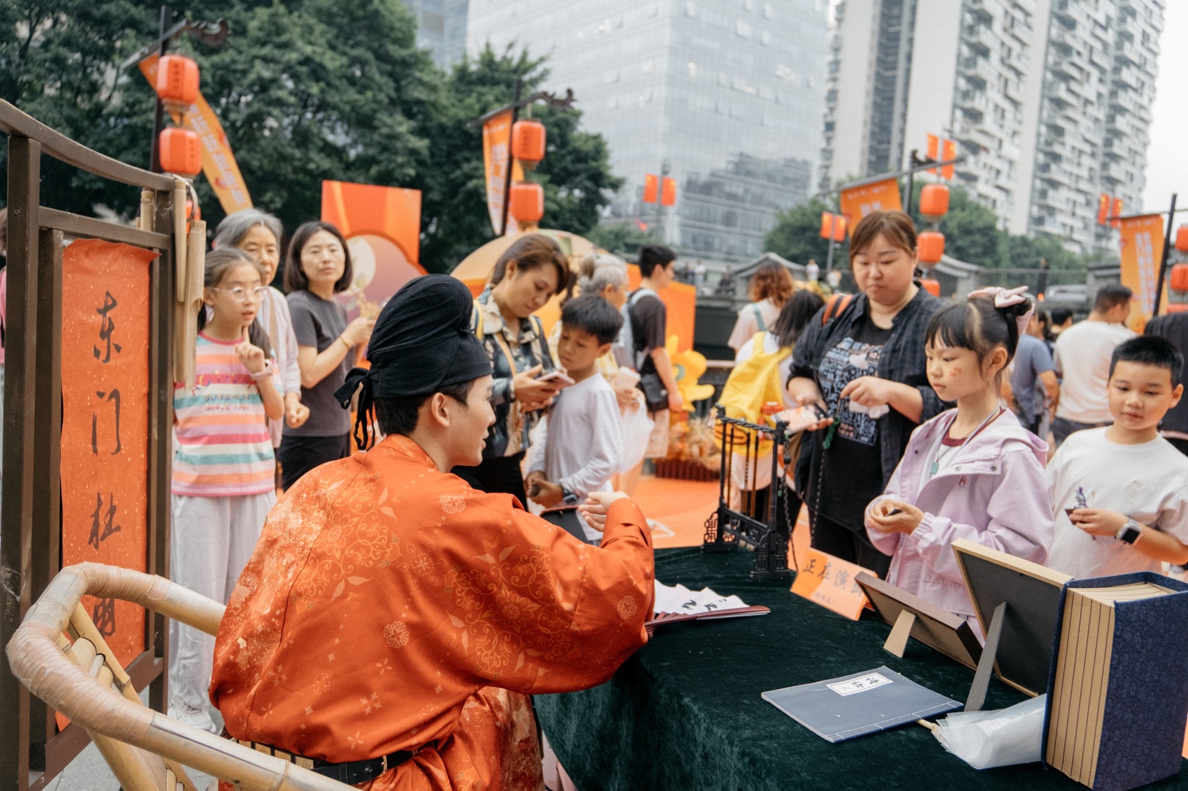 在江上赏月的过程中,游客们参与到各种沉浸式互动环节里。在特色观光游船上,身着汉服的NPC将成为此次中秋夜游中一道独特的风景线,在他们的引领下每一艘游船化作移动的“水上国风派对”,扮演大唐文创“一姐”薛涛的NPC以“桂”为题,为游客精心布置了一处水上花笺局,等待游客破解;化身巴蜀方言守护者的“扬雄”,在游船上以诙谐生动的方言俚语,娓娓道来蜀地的烟火往事,还教游客学说几句地道的四川话;蜀地顶流CP组合“司马相如”与“卓文君”,以音乐为纽带,与船上的游客展开一场别开生面的对歌互动挑战……通过将传统水上观光转变为沉浸式人文体验,让每一位游客在互动中触摸历史温度,感受巴蜀文化的独特魅力。
