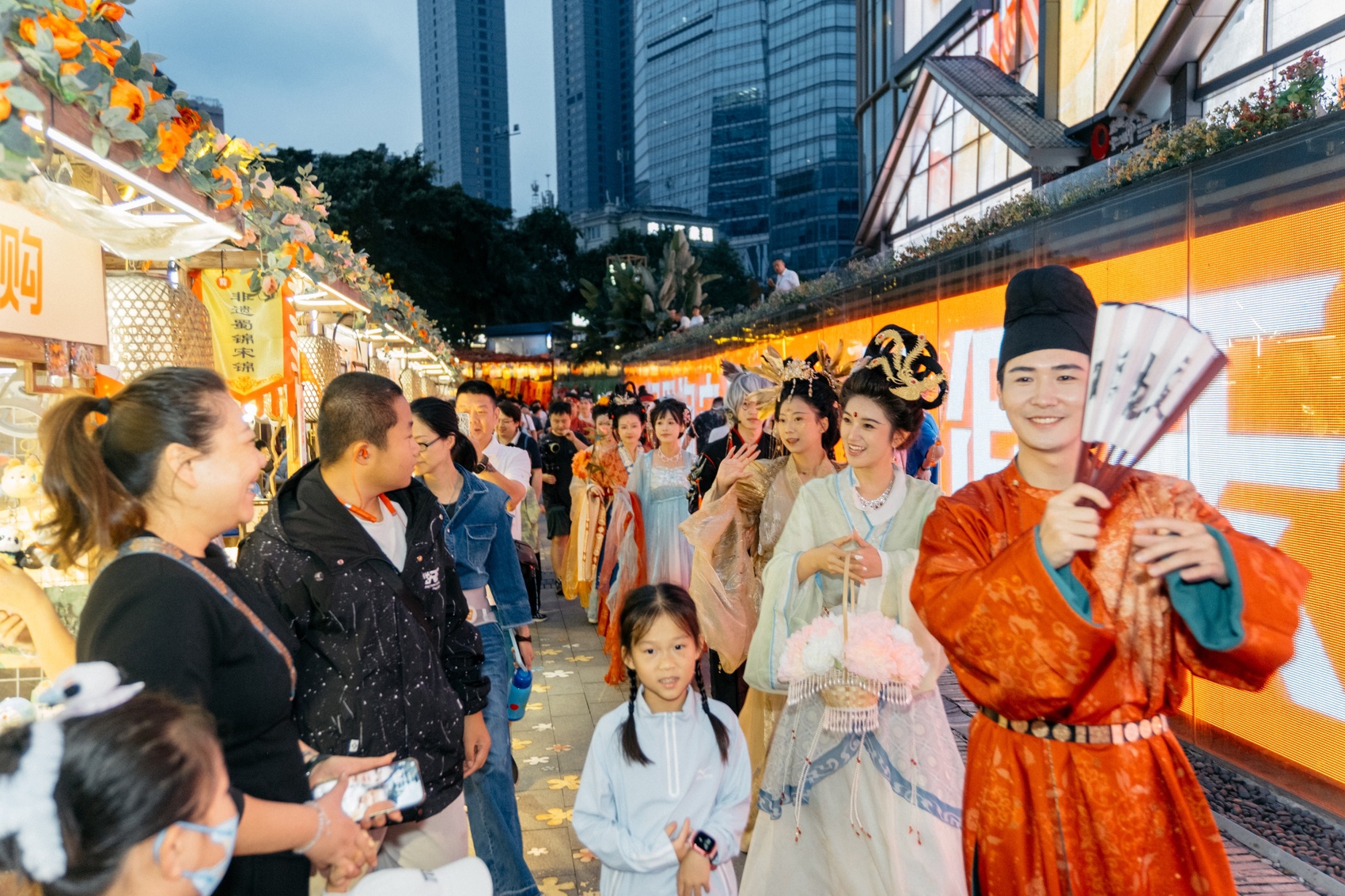 国庆中秋佳节,夜游锦江的角色扮演者们与游客互动(夜游锦江供图)