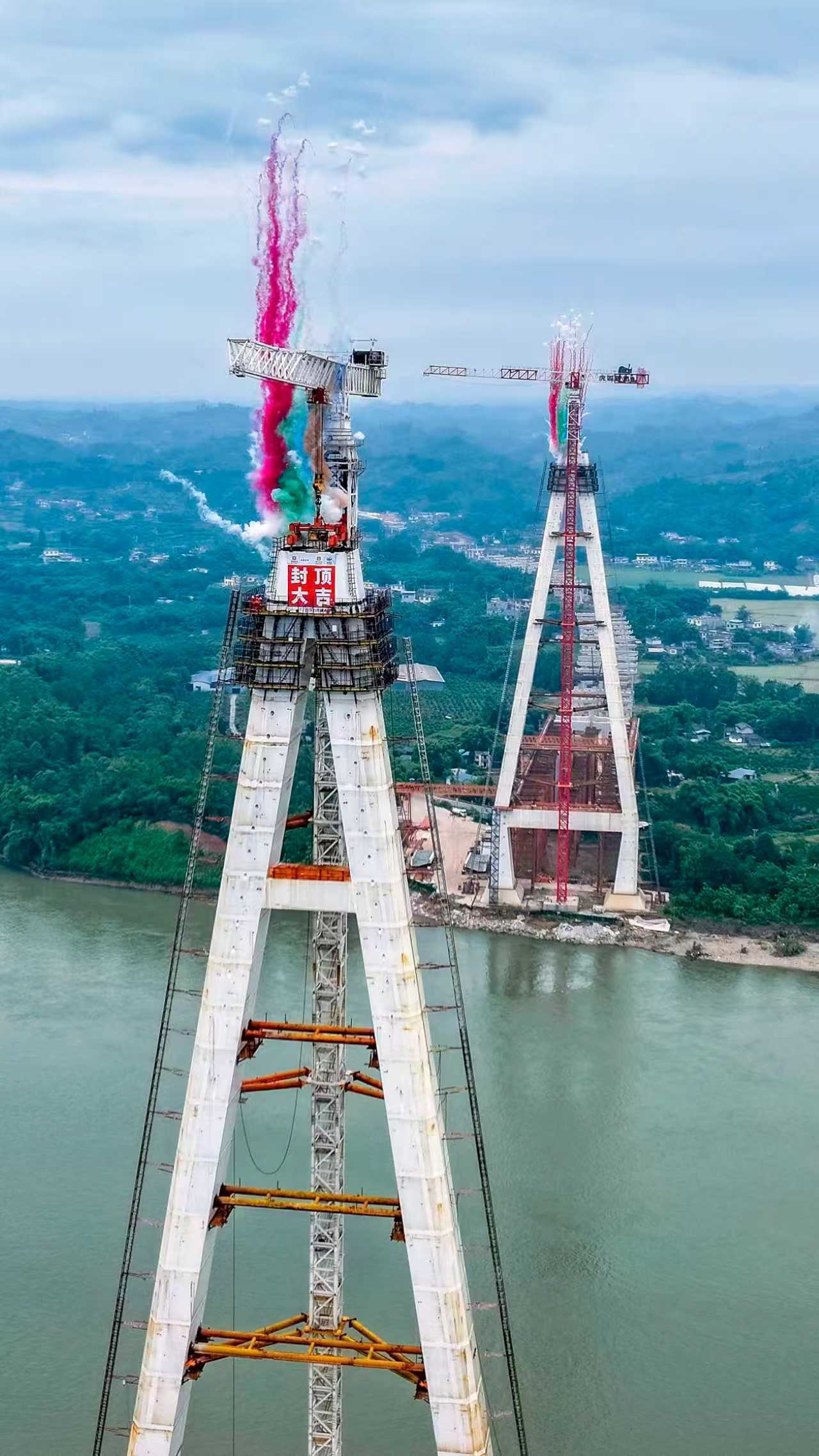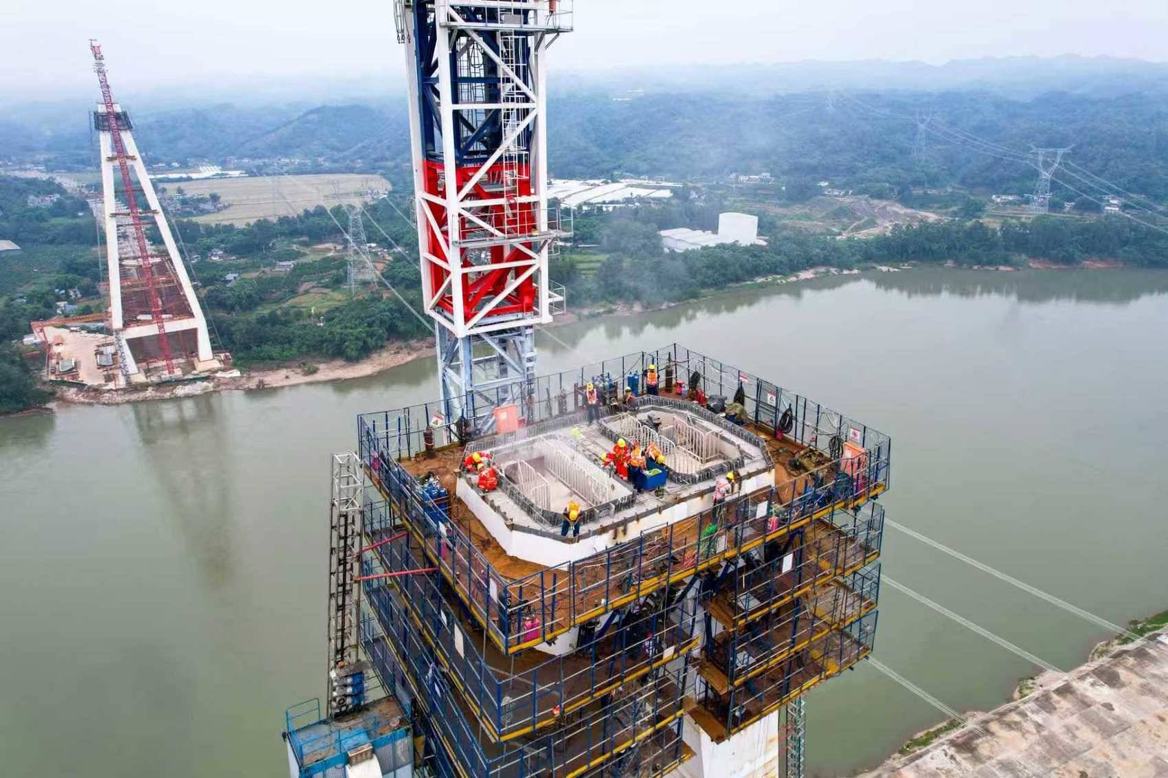 天眉乐高速虎渡溪岷江特大桥主塔封顶