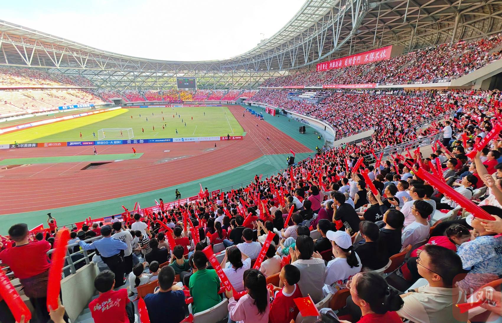 2025年10月6日,现场红旗招展,呐喊彼伏。(C视觉签约摄影师 张学金 摄)