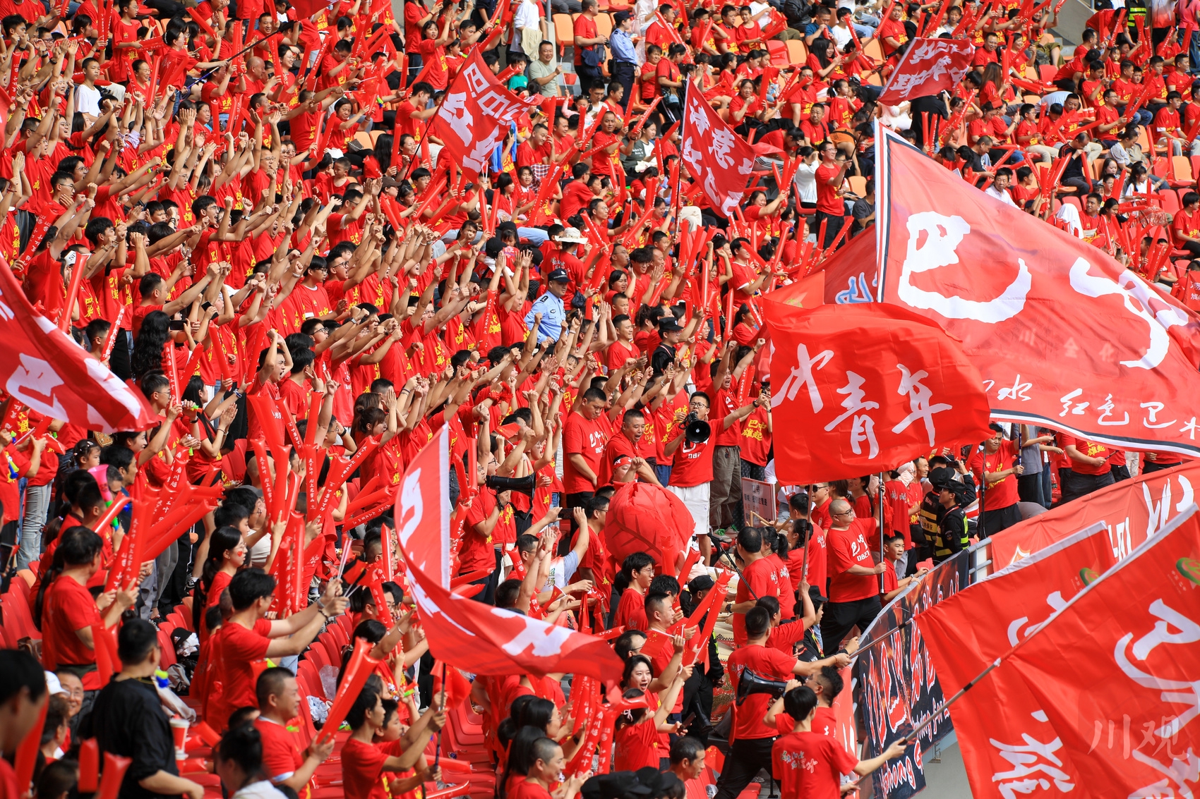 2025年10月6日下午,南充球迷现场加油助威。(C视觉签约摄影师 余中华 摄)