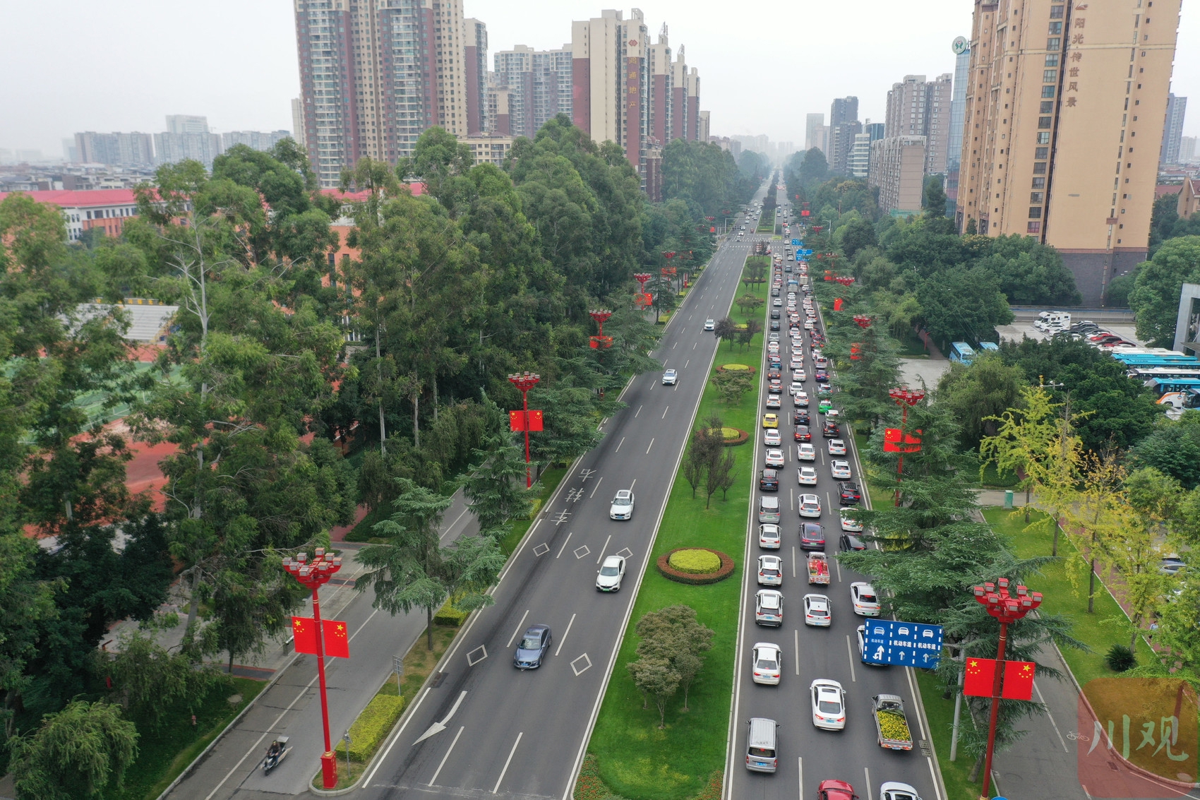10月7日,G351线四川眉山东坡区眉州大道入城方向,车辆缓慢通行。C视觉签约摄影师 姚永亮