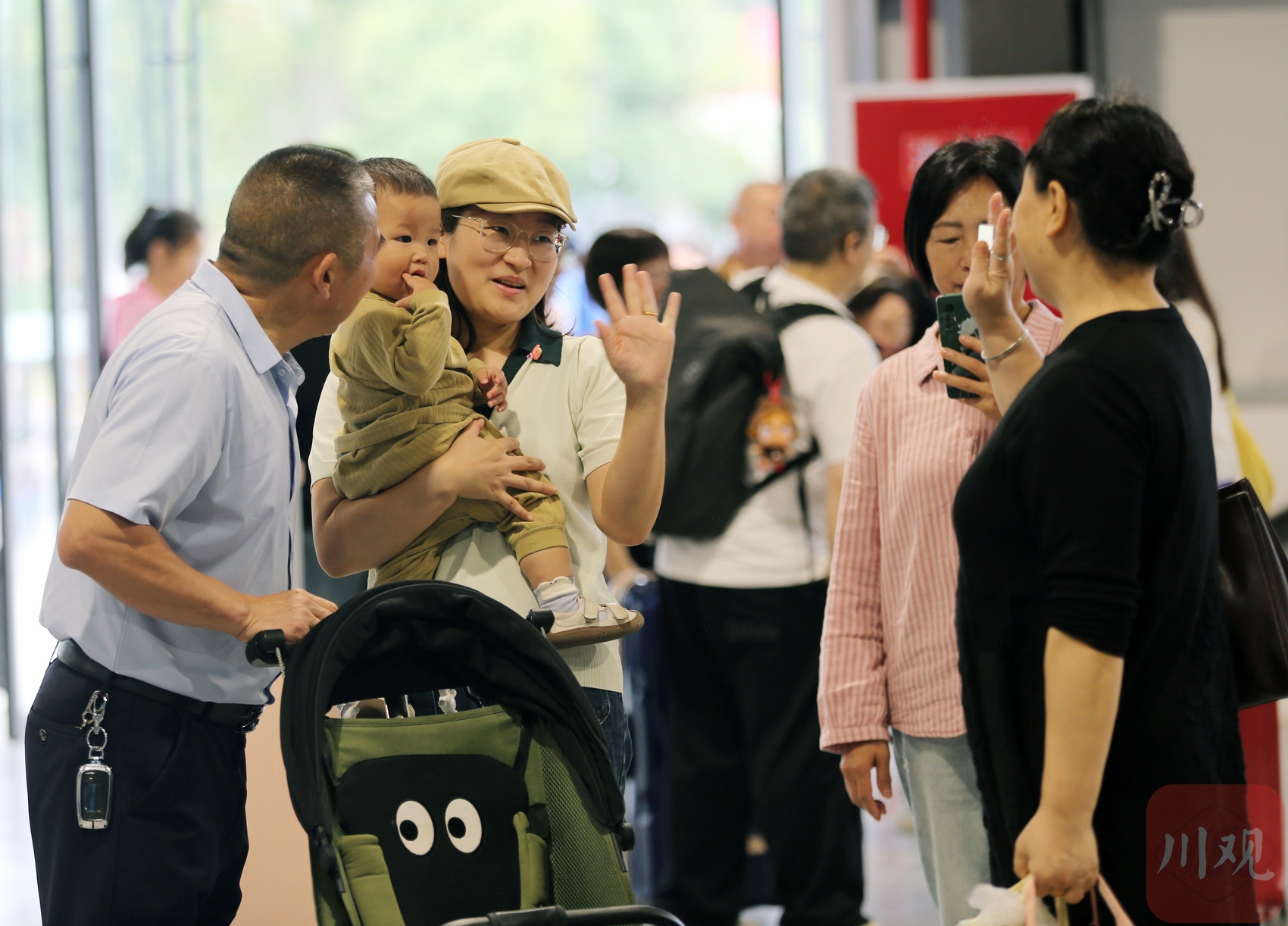 10月7日,旅客在高铁乐山站候车大厅挥手告别亲人。C视觉签约摄影师 李华时