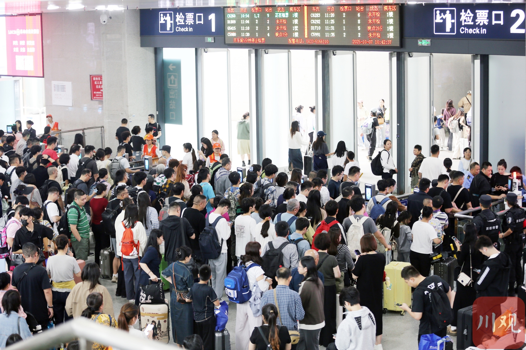 10月7日,大批旅客在高铁乐山站排队候车。C视觉签约摄影师 李华时