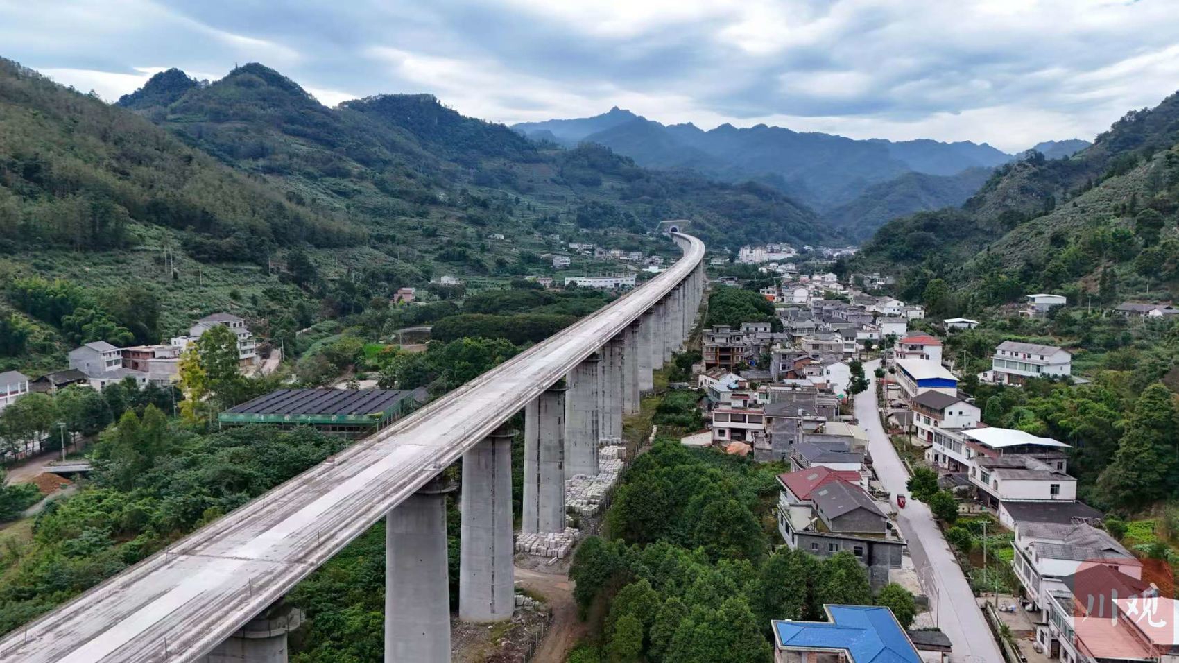 10月8日11时许,四川省宜宾市筠连县,一榀长32米重约790吨的箱梁稳稳落在董家湾中桥上,标志着重庆至昆明高铁宜宾至盐津南段(以下简称:渝昆高铁川滇段)箱梁全部架设完成,为渝昆高铁全线按期通车奠定了基础。