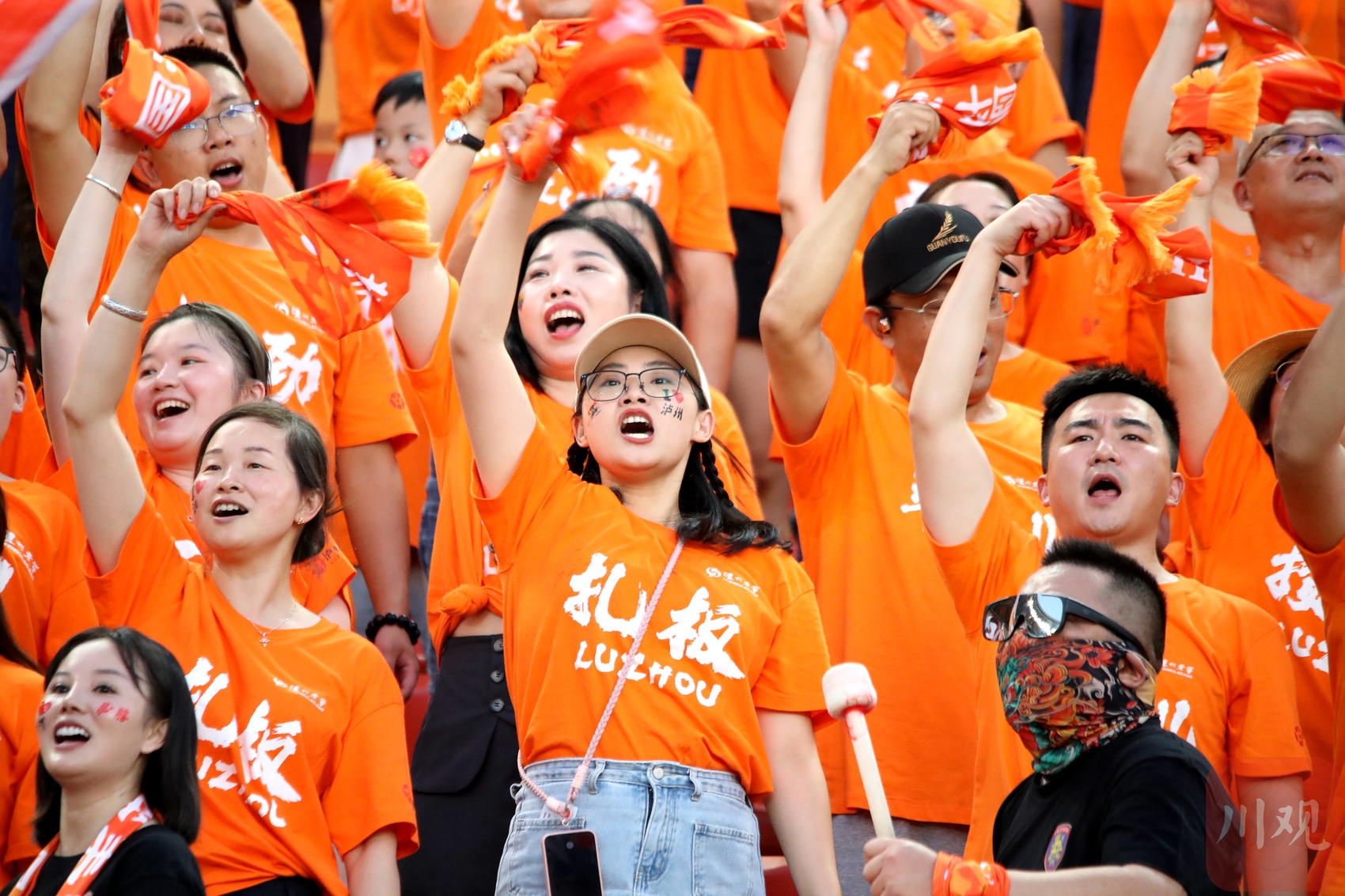 赛场上,泸州队球迷摇旗呐喊。C视觉签约摄影师 曾玉 摄