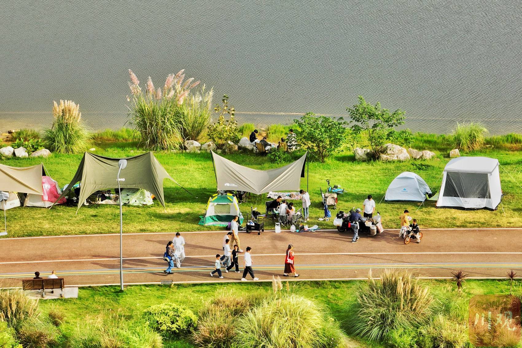 10月7日,成都青龙湖湿地公园尽显秋日景致,众多市民和游客在此露营,享受快乐假期。