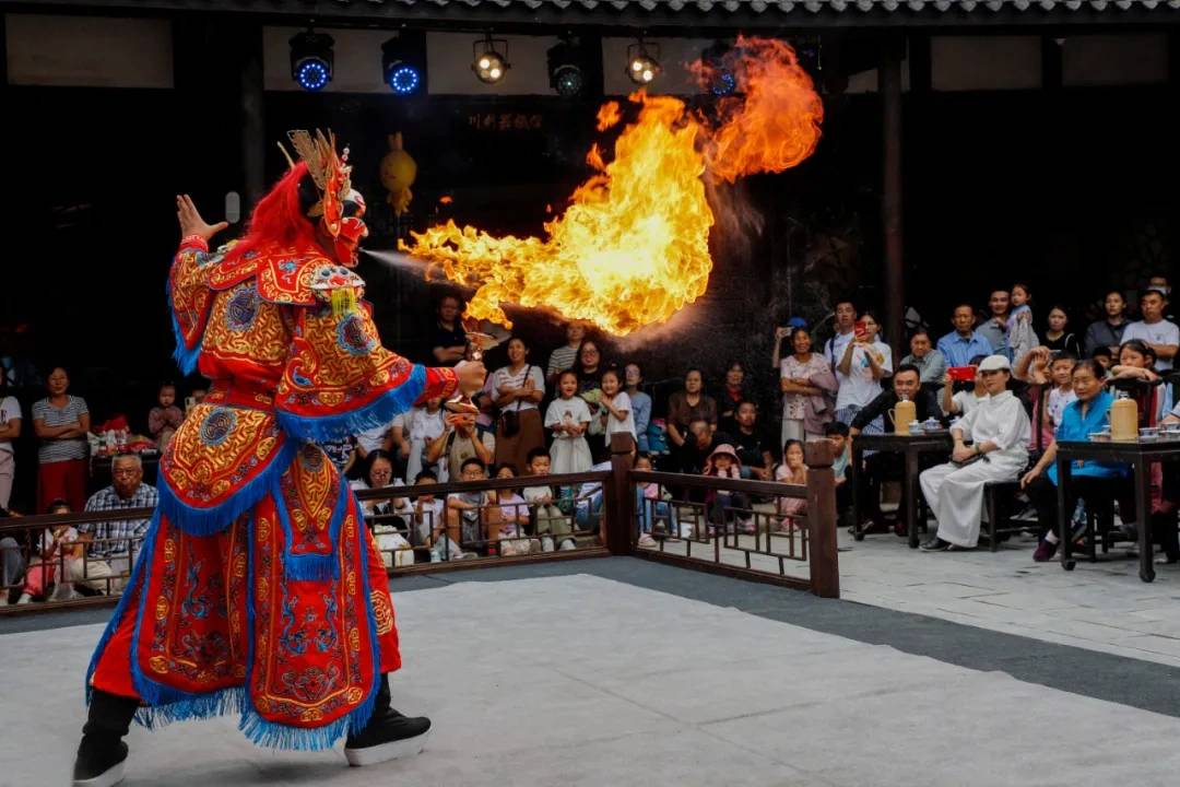 双节前完成多项提升工程的城厢古城,在假期集中推出近10处新景点,形成以文庙、沙河书斋、中国川剧文化艺术中心等为代表的多元文旅体验场景。文庙“六艺展演”让游客在互动中感受传统礼仪;沙河书斋以文学空间延续城市文脉;中国川剧文化艺术中心每日两场的“芙蓉国粹戏曲演绎”场场爆满,成为游客沉浸式体验川剧魅力的重要场所。
