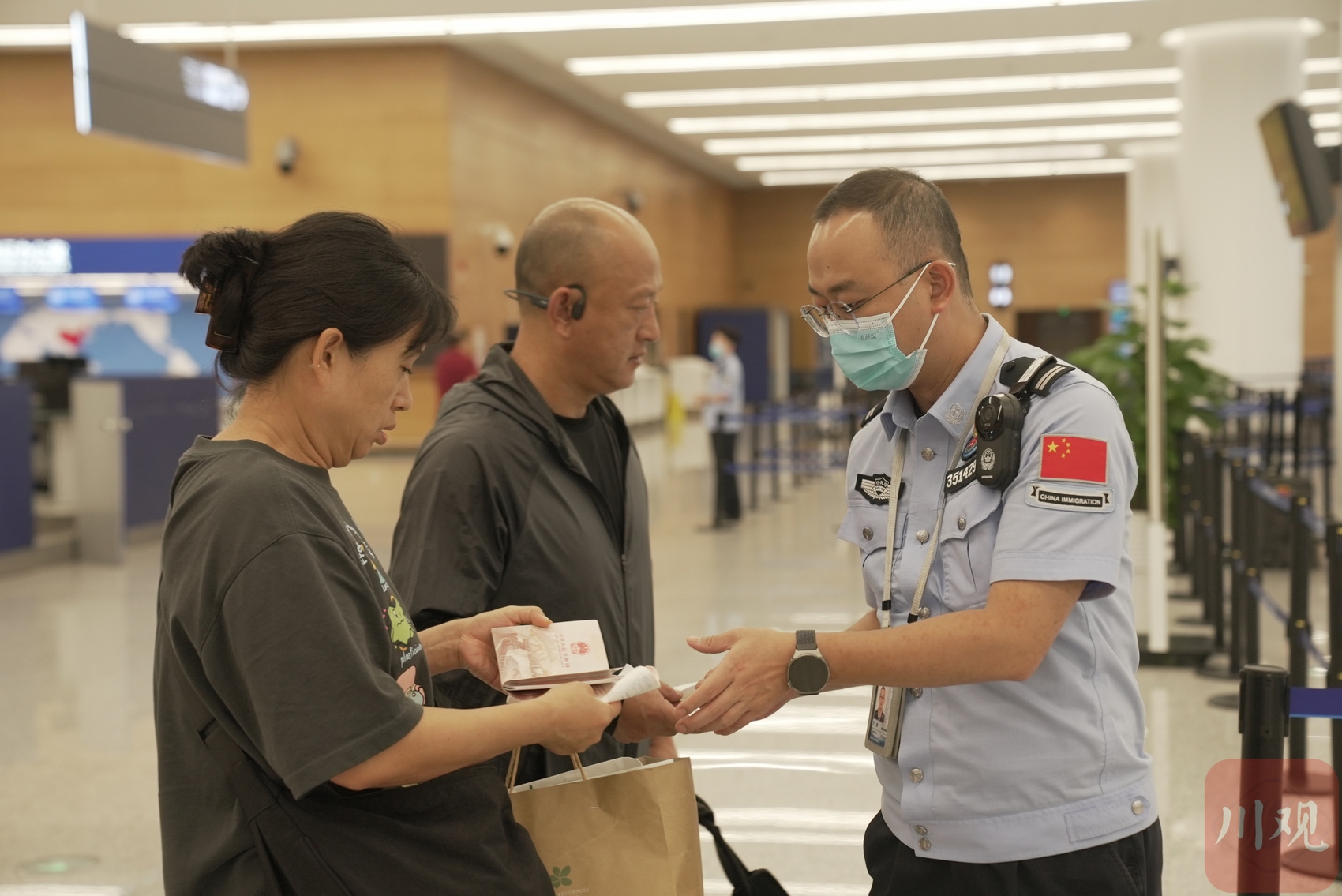 四川出入境边防检查总站民警正在为入境旅客预查验护照信息