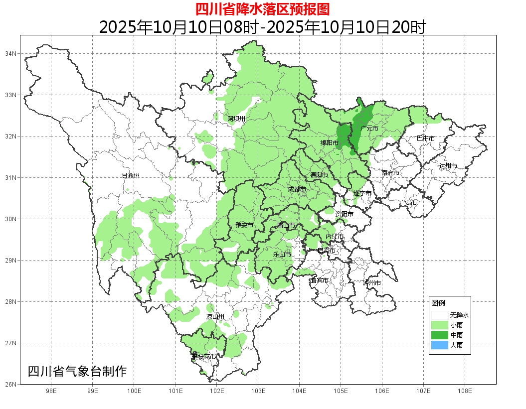 未来三天,11日开始,我省有一次降温降水天气过程,盆地西部北部的部分地方有中到大雨,局部暴雨,个别大暴雨。局部地方累积雨量较大,需加强防范地质灾害、中小河流山洪等气象次生灾害。