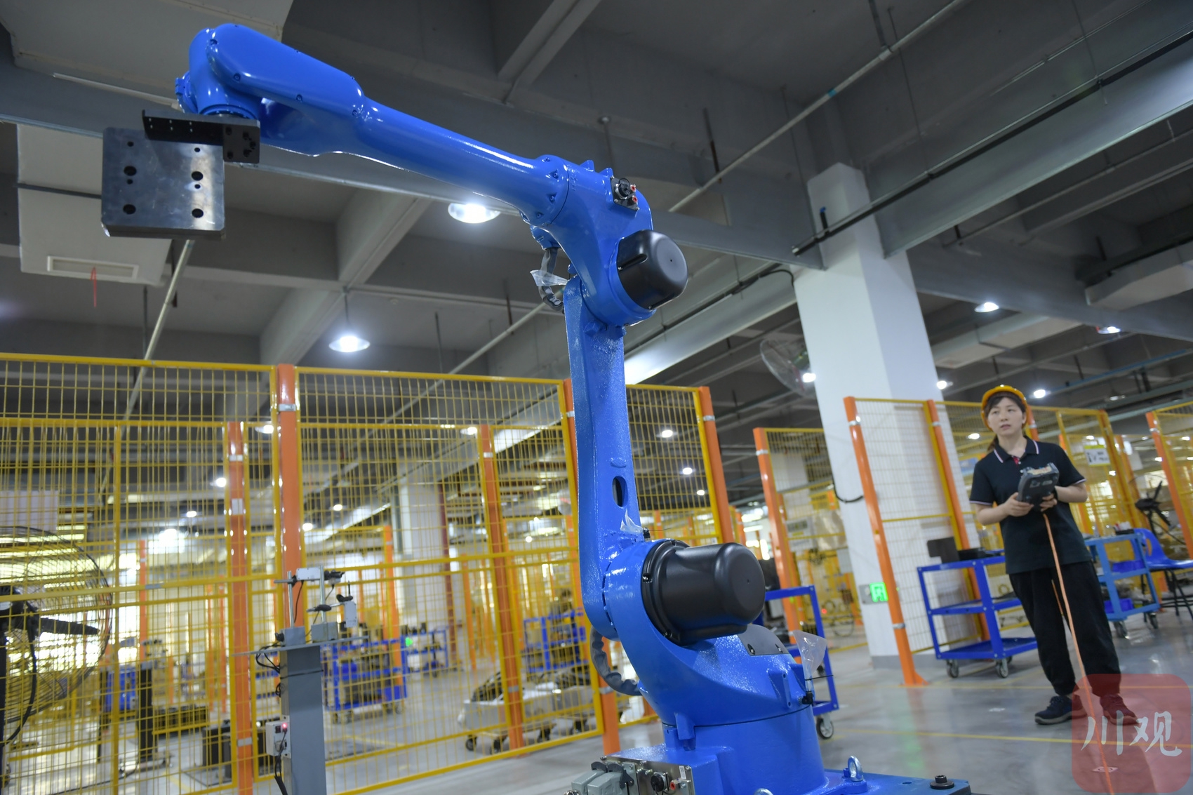 2025年10月10日,在位于成都市成华区机器人产业园的成都卡诺普机器人技术股份有限公司生产车间,工作人员正在测试工业机器人。