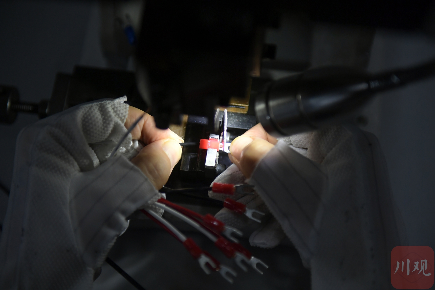 2025年10月10日,在位于成都市成华区机器人产业园的成都卡诺普机器人技术股份有限公司生产车间,工作人员装备工业机器人控制箱线路。