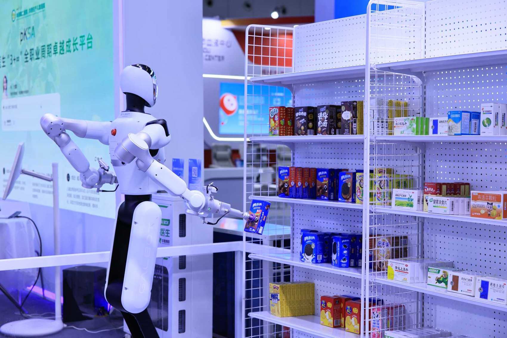 在华西第二医院展区,一间“无人值守24小时药房”引人注目。观众仅需在前台平板电脑上点选所需药品,机器人自主移动至药柜,精准识别并抓取药品,再递交至观众手中。这台机器人同样能像人类一样“售卖”零食,均可准确识别并取出。