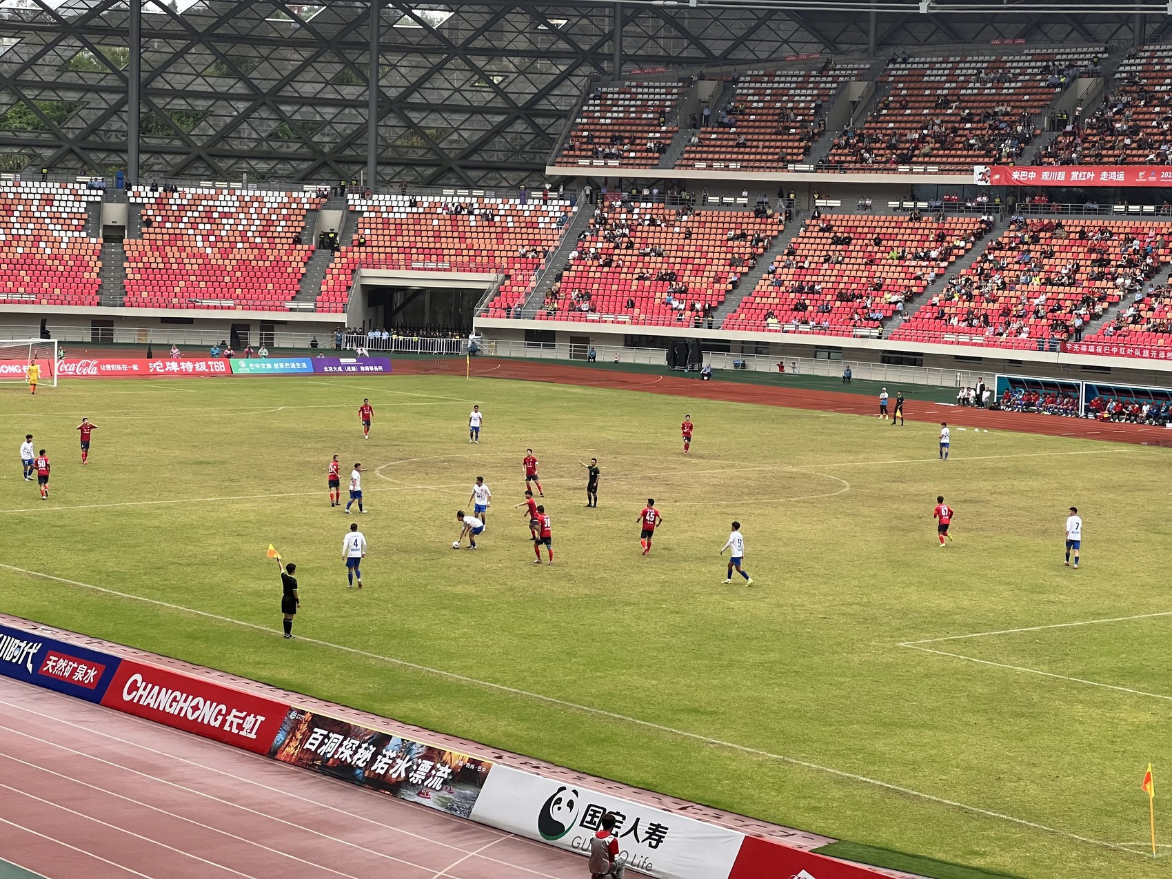 随后,巴中队发起反击,比赛第35分钟,巴中队67号球员攻入一球,扳平比分,值得一提的是,这是巴中队主场的首粒进球,现场球迷欢呼助威。
