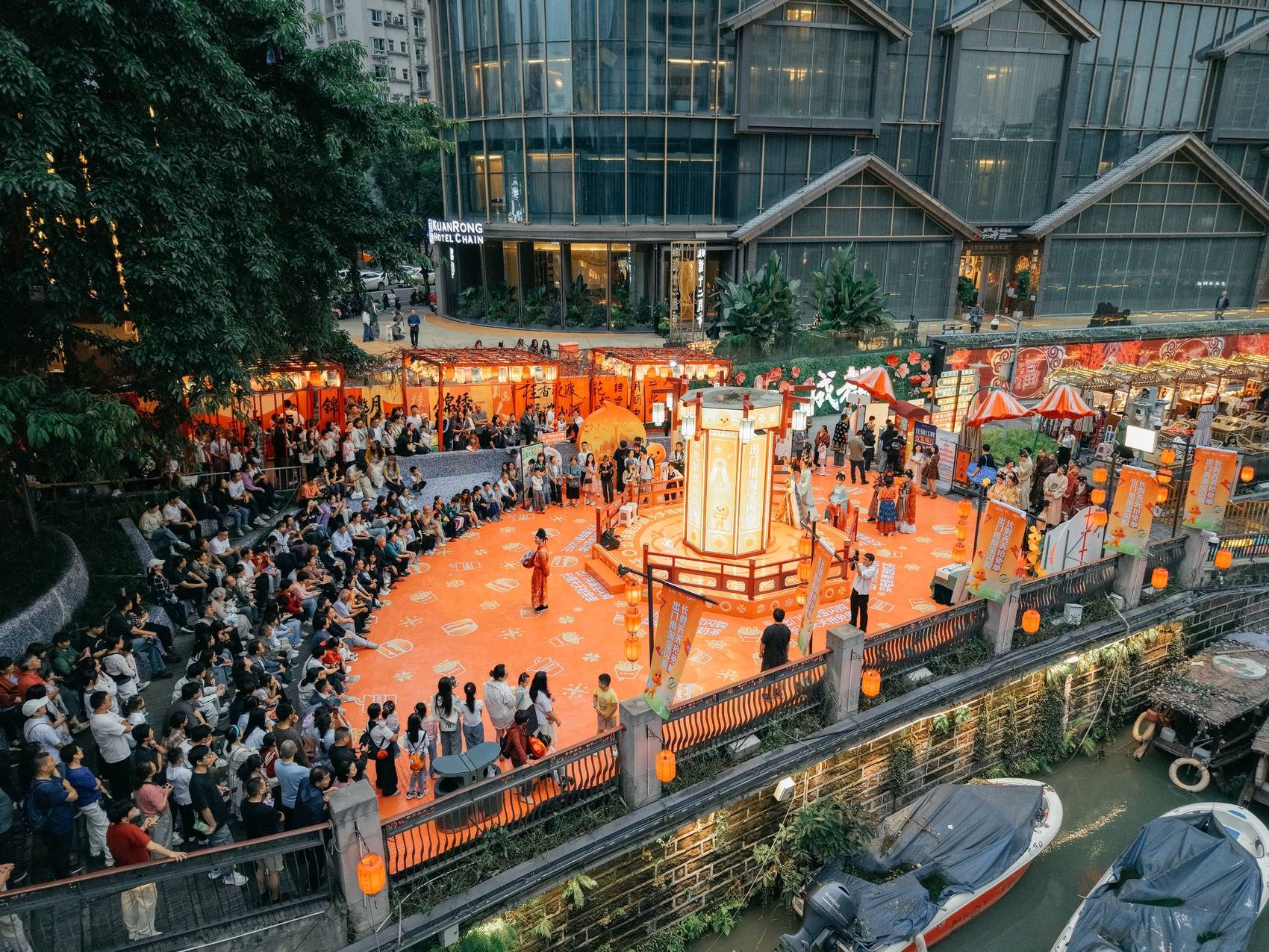 每当夜幕垂下,成都锦江东门码头便顷刻间华丽“变身”:灯火通明的街市沿河岸铺开;古彩戏法、非遗手作、国风文创等老物件“焕”新上场;才华横溢的“李白”摆起了小摊儿;游船上的人们戴着MR眼镜“重返”千年之前……锦江河岸化身为穿越时空的舞台,以沉浸式演绎、水岸联动体验的创新形式,再现“门泊东吴万里船”的繁华市井场面,成为消费者全新的“游乐场”。