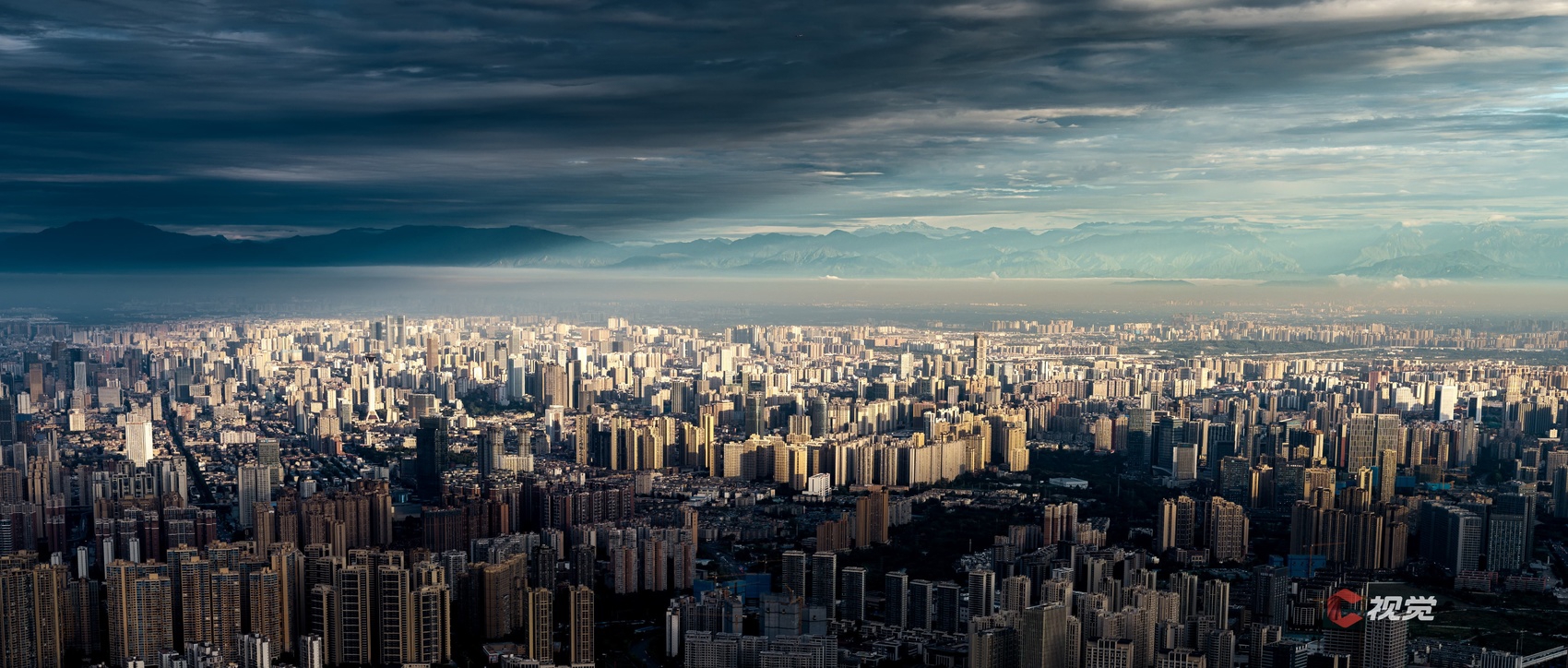10月13日清晨,成都市区天气晴好,连绵的龙门山脉浮现在城市上空。C视觉签约摄影师 张翔升