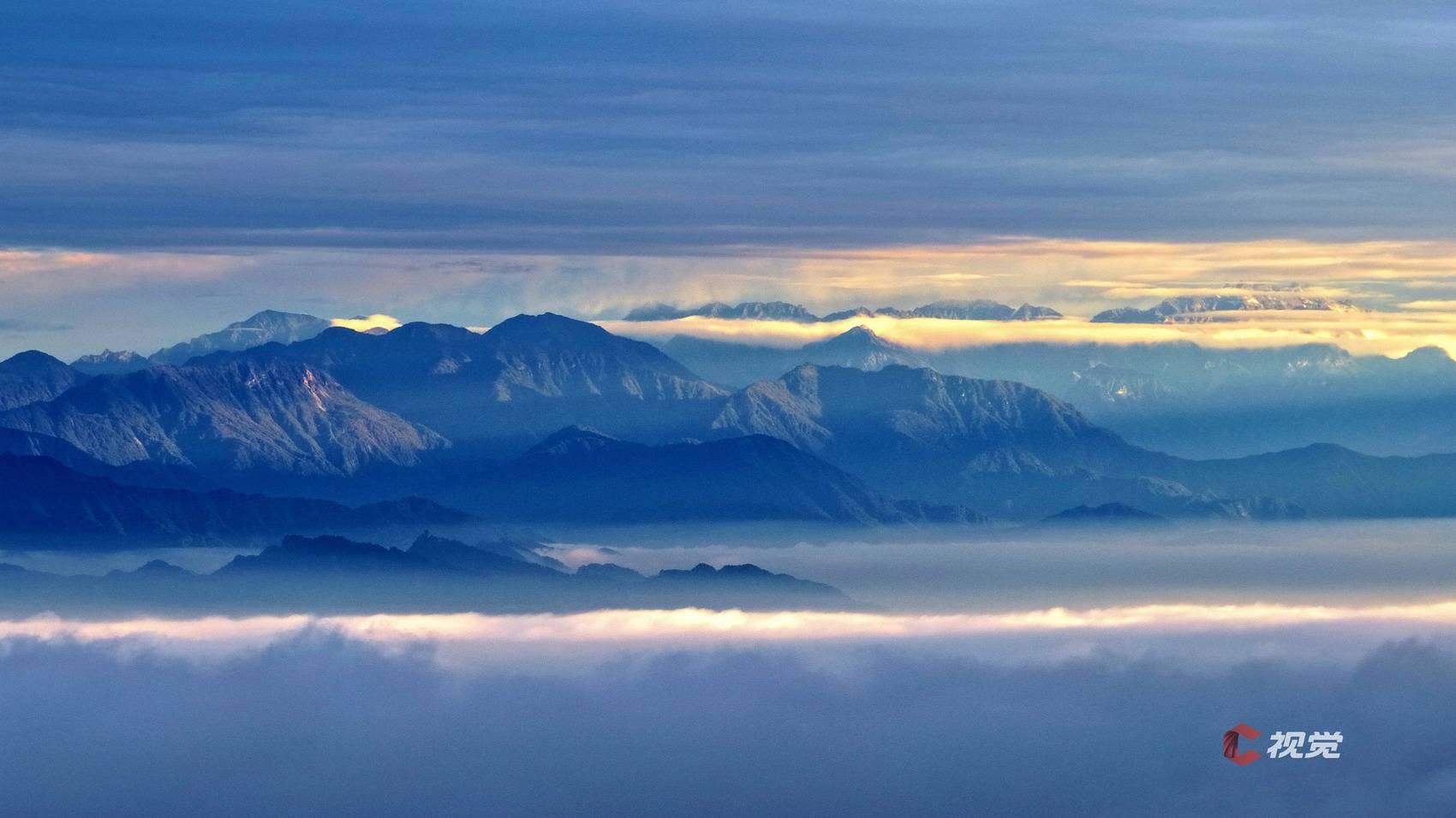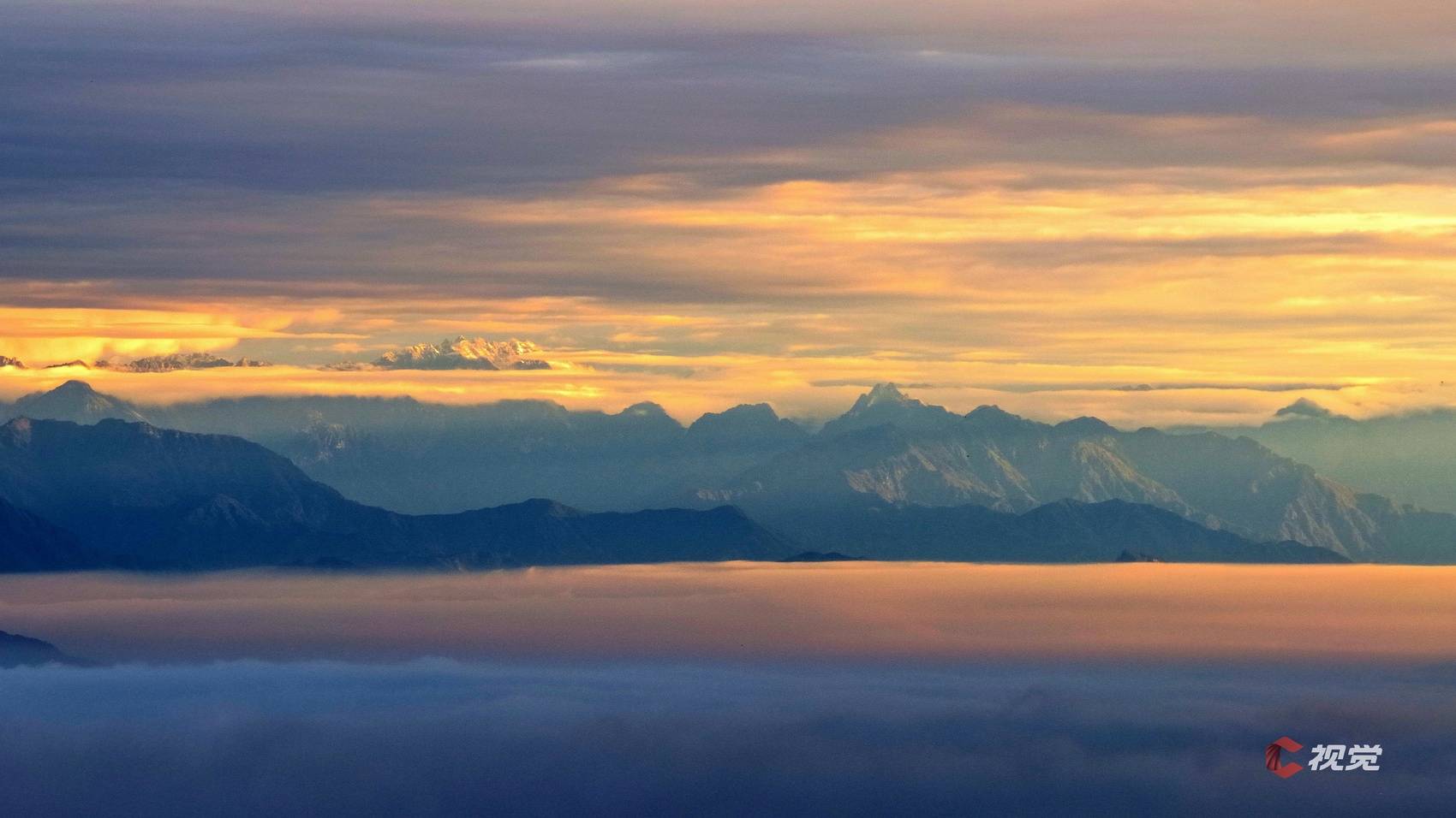 10月13日晨曦时分,在成都崇州城区西望,雪山群峰挺立云端。C视觉签约摄影师 李旭