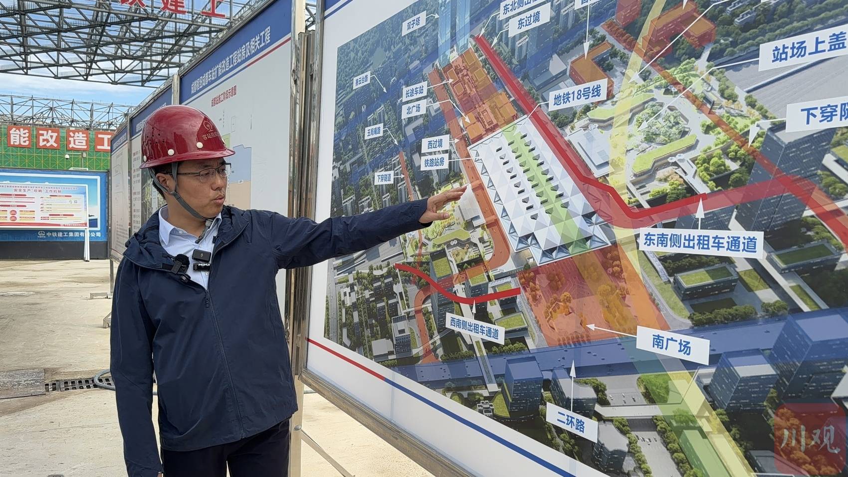 中国铁路成都局集团有限公司客站建设指挥部副指挥长聂兆希向记者介绍成都站建成后的功能布局