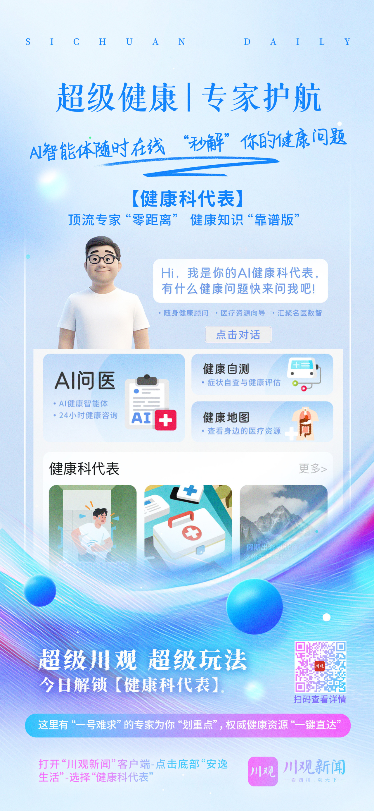 健康不是单选题,而是需要科学、便捷、贴心的“全方位守护”。打开川观新闻“健康科代表”,让权威医护专家为你答疑,让AI智能为你解忧,让海量资源为你护航——从此,健康管理不再是难题,而是触手可及的日常。