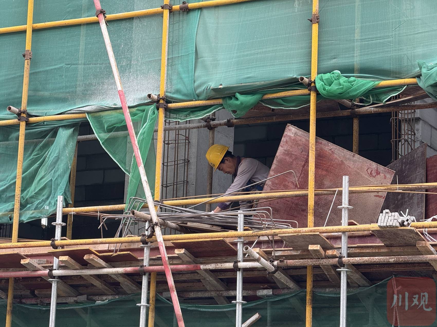 滋滋啦啦的切割声、咚咚作响的敲砖声、搅拌车滚筒内石沙摩擦的闷响……10月14日,“万千气象看四川”四季度集中采访团走进遂宁市安居区四川相源圆柱形锂电池项目的建设现场,一股“与时间赛跑”的施工热浪扑面而来。五座主体已封顶的厂房和一栋仓库,还罩在绿色安全网中,工人们正踩着脚手架,加紧铺贴外立面瓷砖。厂房内,硬化完成的地面平整光亮,内部装修也在同步推进。