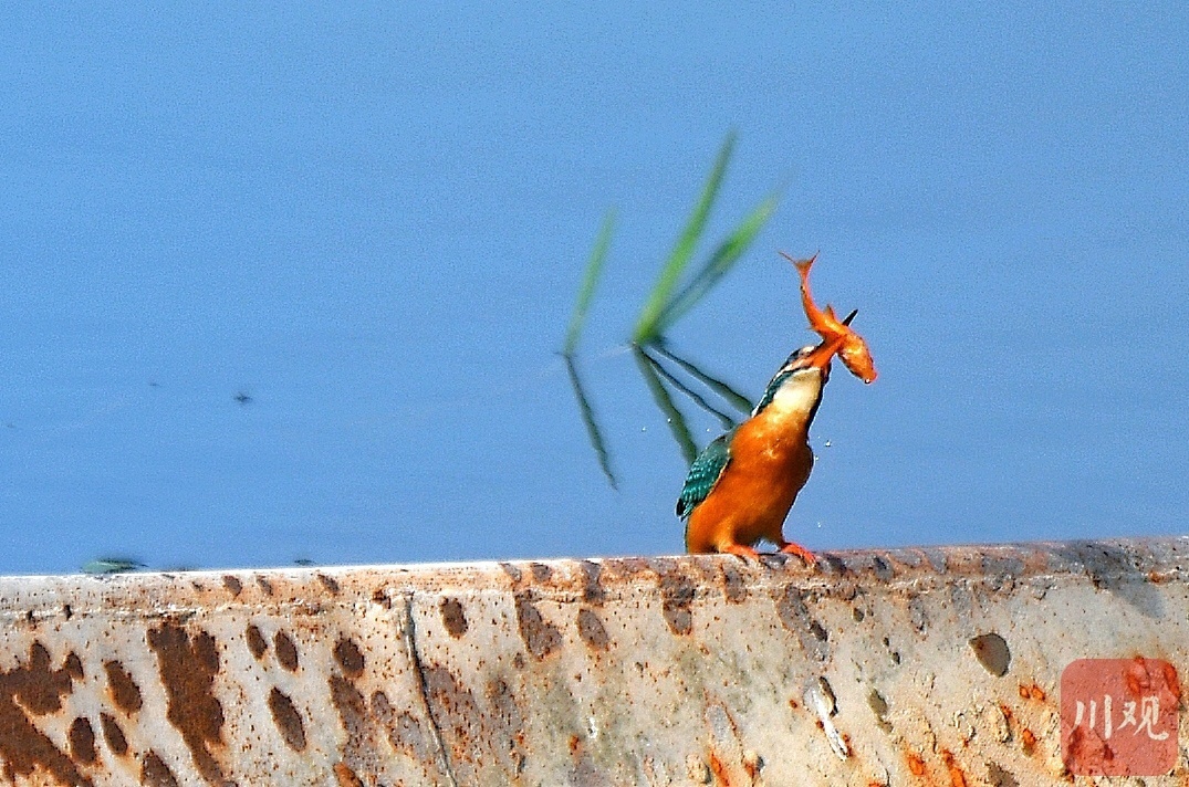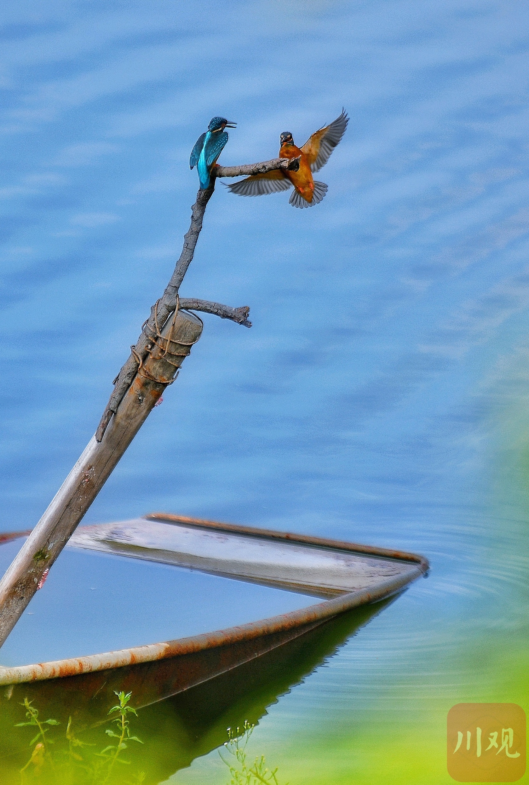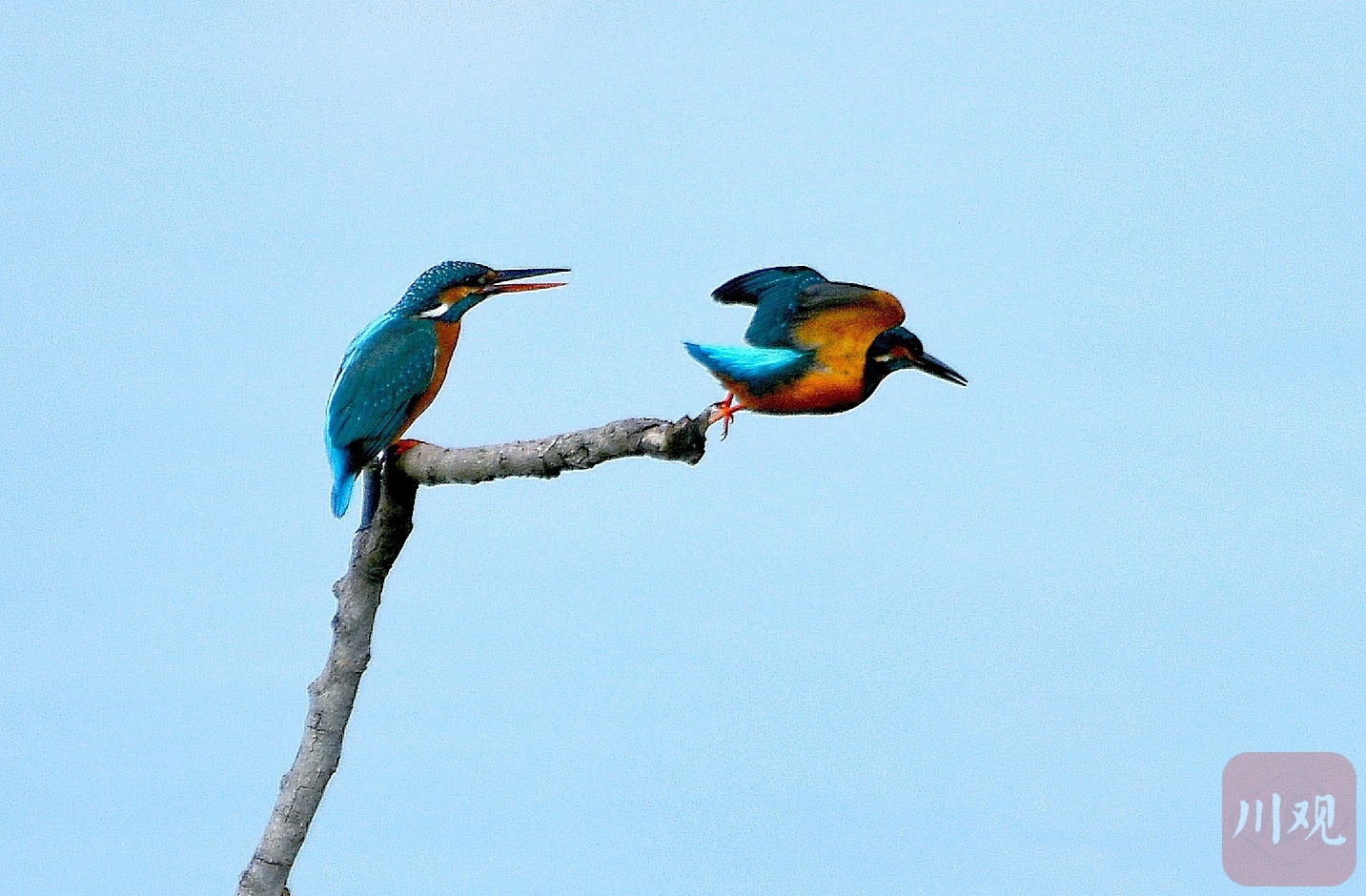 据了解,这对翠鸟属于留鸟,已在浣花溪栖息数年。拍友们会不定期买小鱼投喂,久而久之,翠鸟也习惯了这样的“合作模式”。当天它们不仅展示了飞翔、入水捕鱼等动态绝活,连梳理羽毛、水浴、斗嘴等生活化场景也大方上演。每轮快门声过后,拍友们总会凑在一起,津津有味地回看刚刚抓拍到的精彩画面。这和谐的一幕,不仅展现了人与自然的亲密互动,也让浣花溪成为成都热门的“追鸟”打卡地。