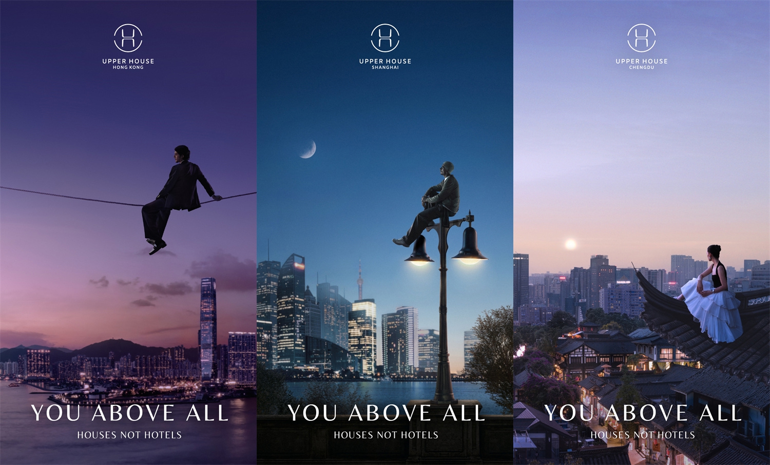 太古酒店整合全球统一“居舍”品牌发布的香港、上海、成都三地海报。