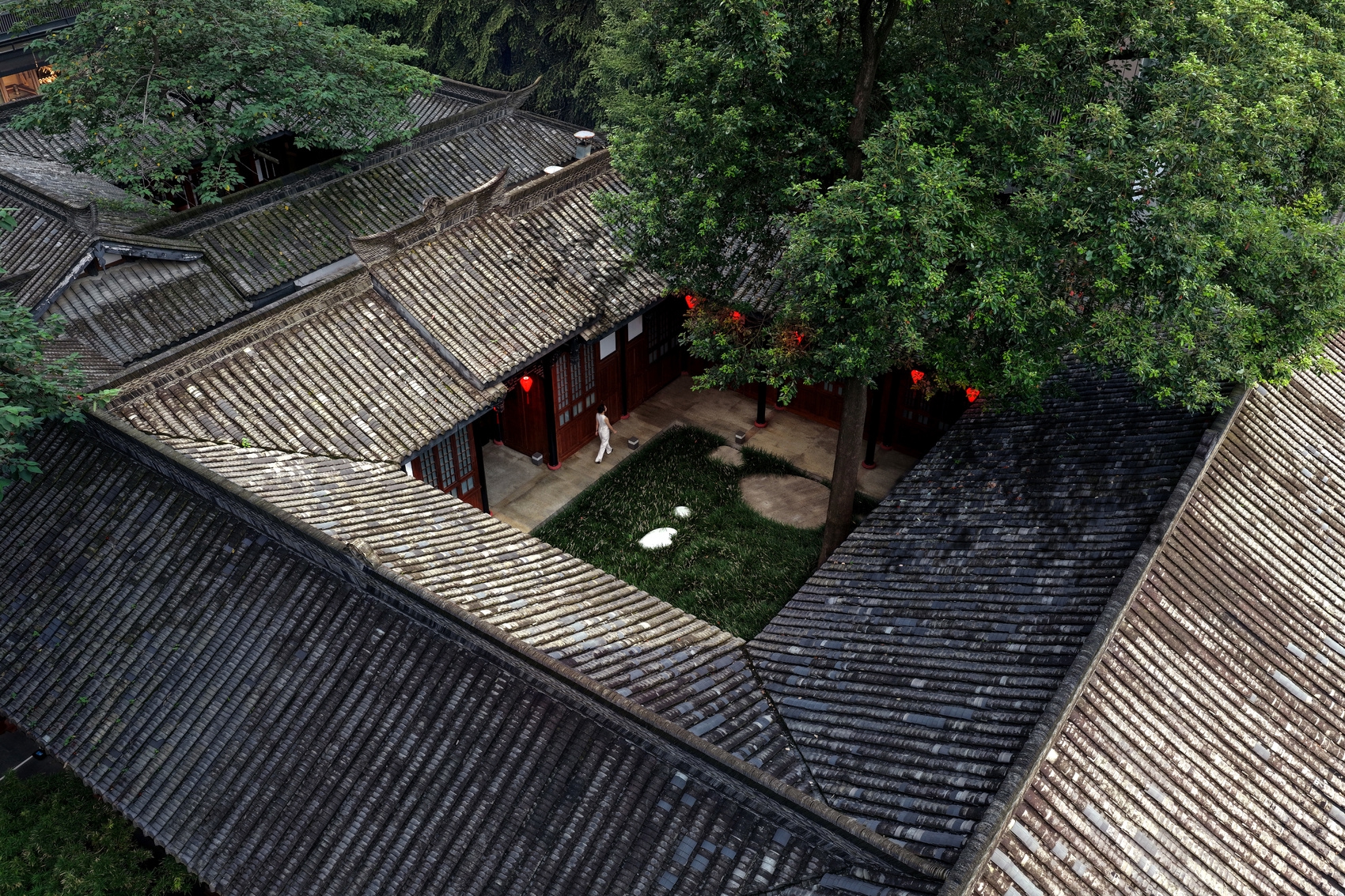成都居舍的宾客抵达入口是一处拥有逾百年历史、始建于清朝的中式庭院——笔帖式。
