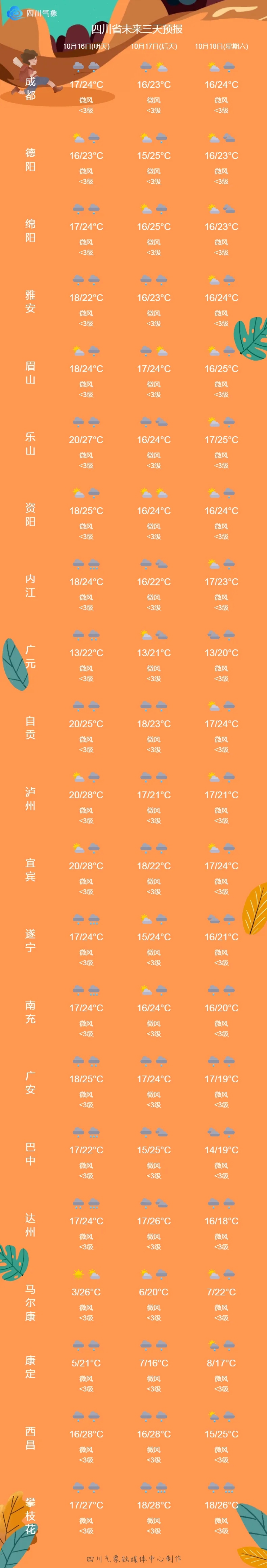 今天(10月15日),中央气象台和四川省气象台同时预报,16日夜间到17日,四川有一次明显降水天气过程。