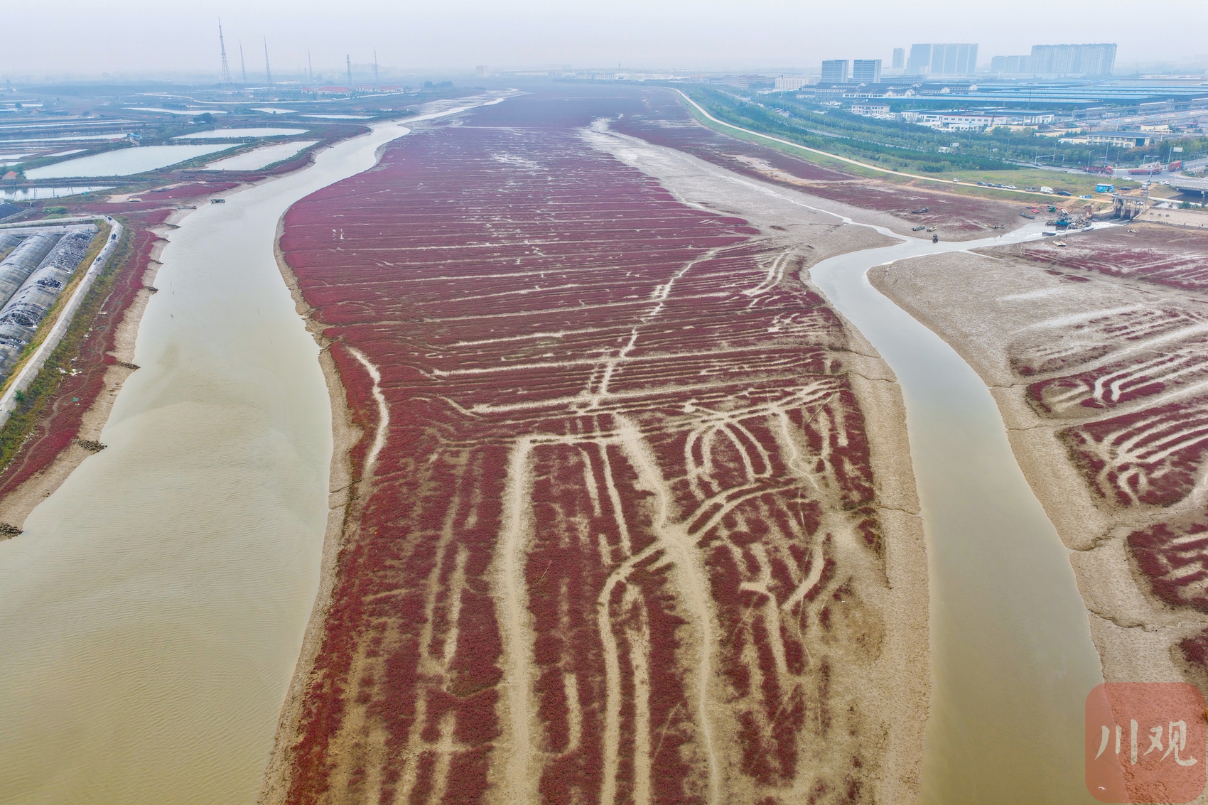 据了解,盐地碱蓬一般生长于盐碱土壤环境,山东青岛西海岸新区红石崖街道河海湿地的生态条件为盐地碱蓬提供了生长空间。每年9月至10月份,盐地碱蓬所释放出的红色最为浓烈,孕育出独特的生态之美,由此也进入到一年之中观赏“红海滩”最好的季节。