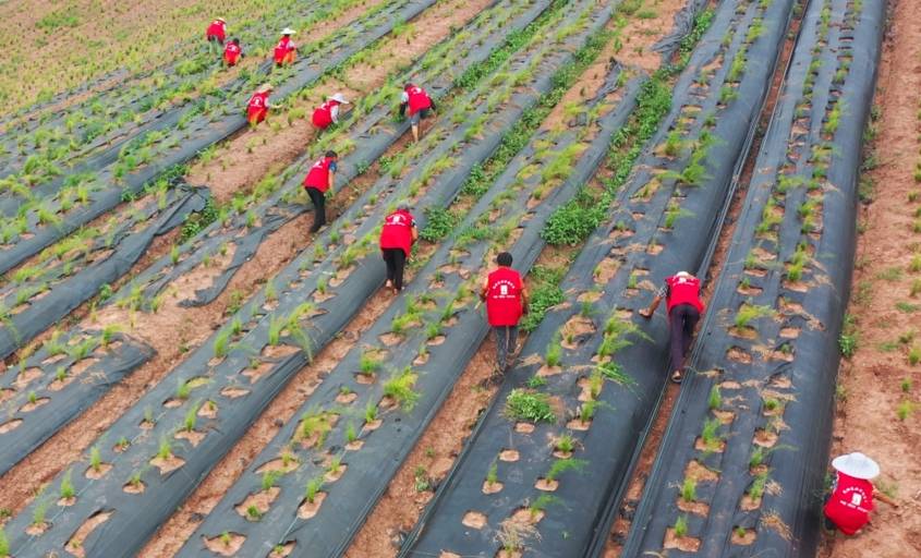 工人在郭北镇天冬种植基地除草(东兴区中医药大健康产业推进中心提供)