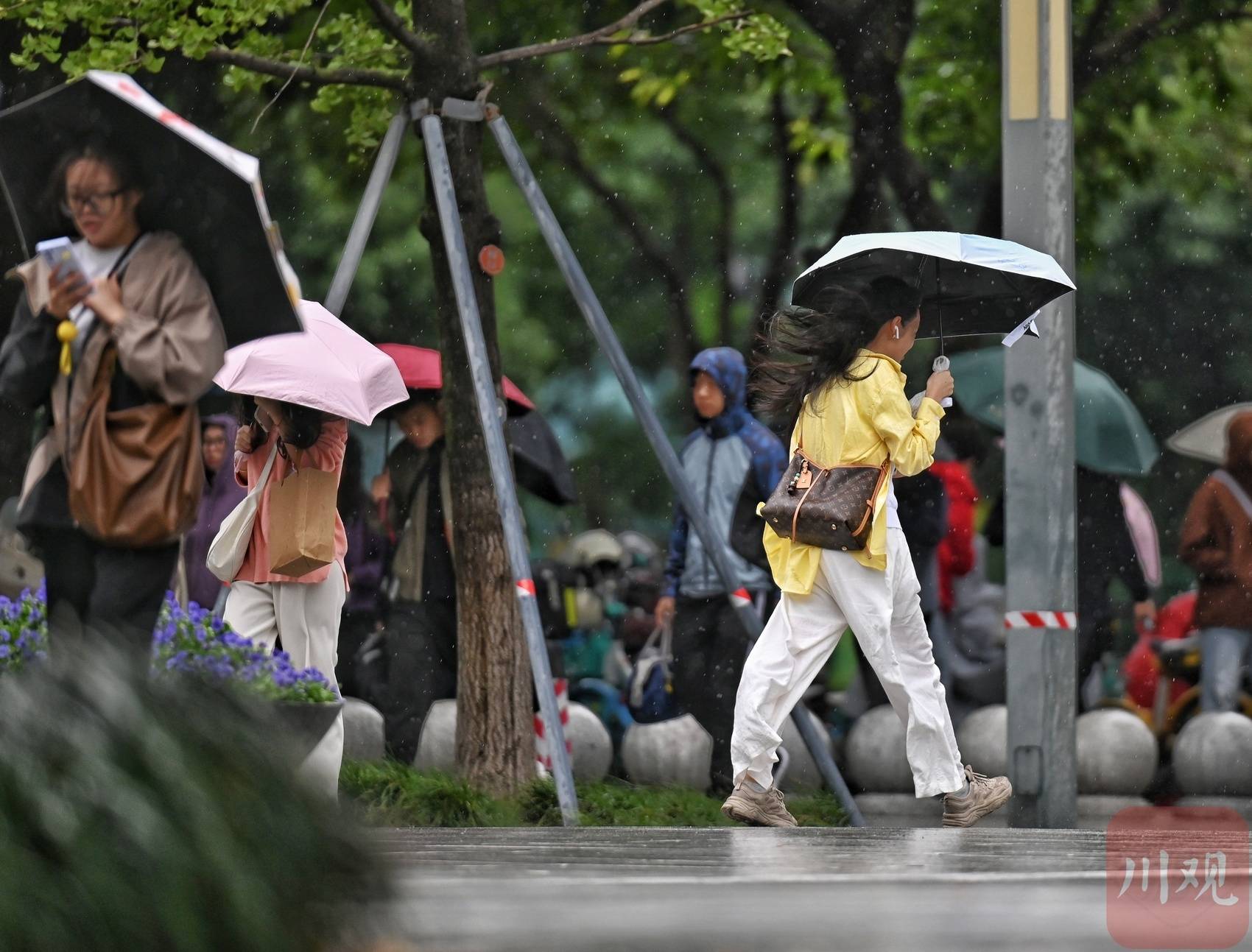 10月20日,成都市区进入阴雨状态,气温已经降到“1”字头,最低气温只有10℃出头,市民游客换上厚衣服,顶风冒雨前行。四川省气象台的最新预报显示,19—21日,四川盆地气温将持续下降,在冷空气影响时,有3—5级偏北风。未来一周,成都最低气温降至10℃出头,最高气温只有16℃左右。