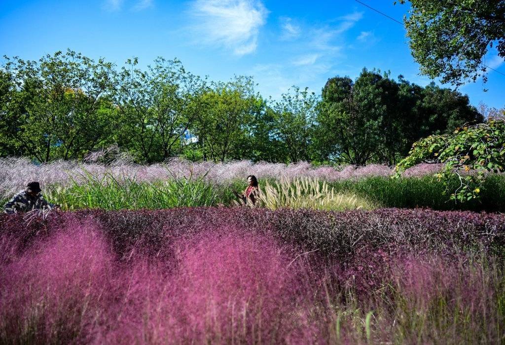 近日,位于天津市滨海新区的泰达植物资源库芊卉园的观赏草迎来最佳观赏期,狼尾草、粉黛乱子草等色彩斑斓,摇曳生姿,吸引不少游客游览拍照。