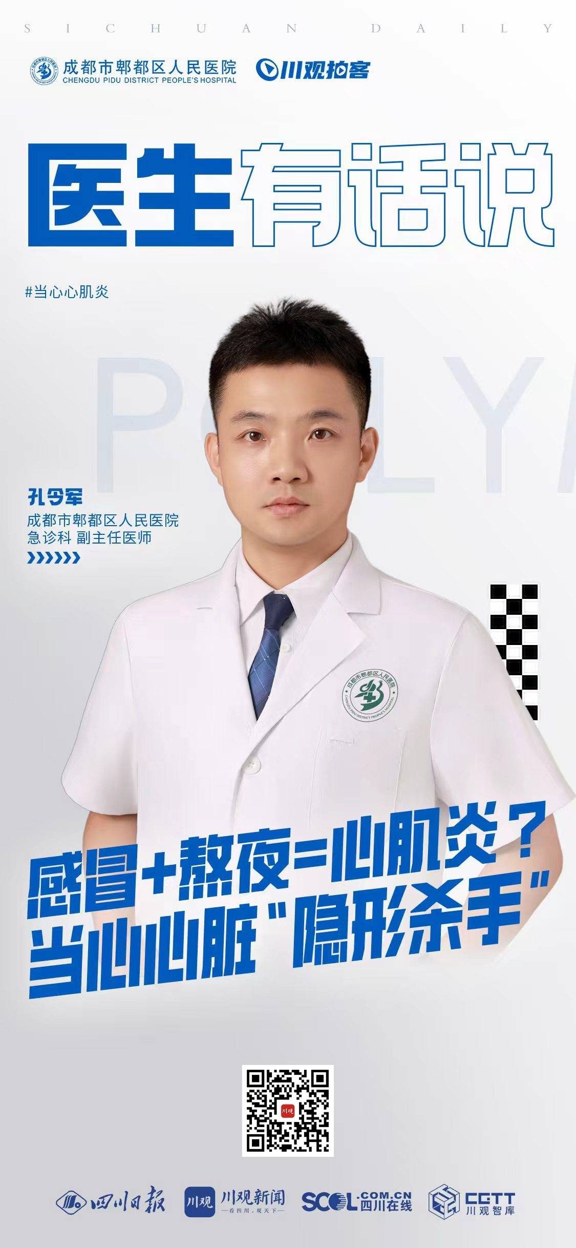 本期栏目,来自成都市郫都区人民医院急诊科的副主任医师孔令军,就跟大家科普如何预防病毒性心肌炎。