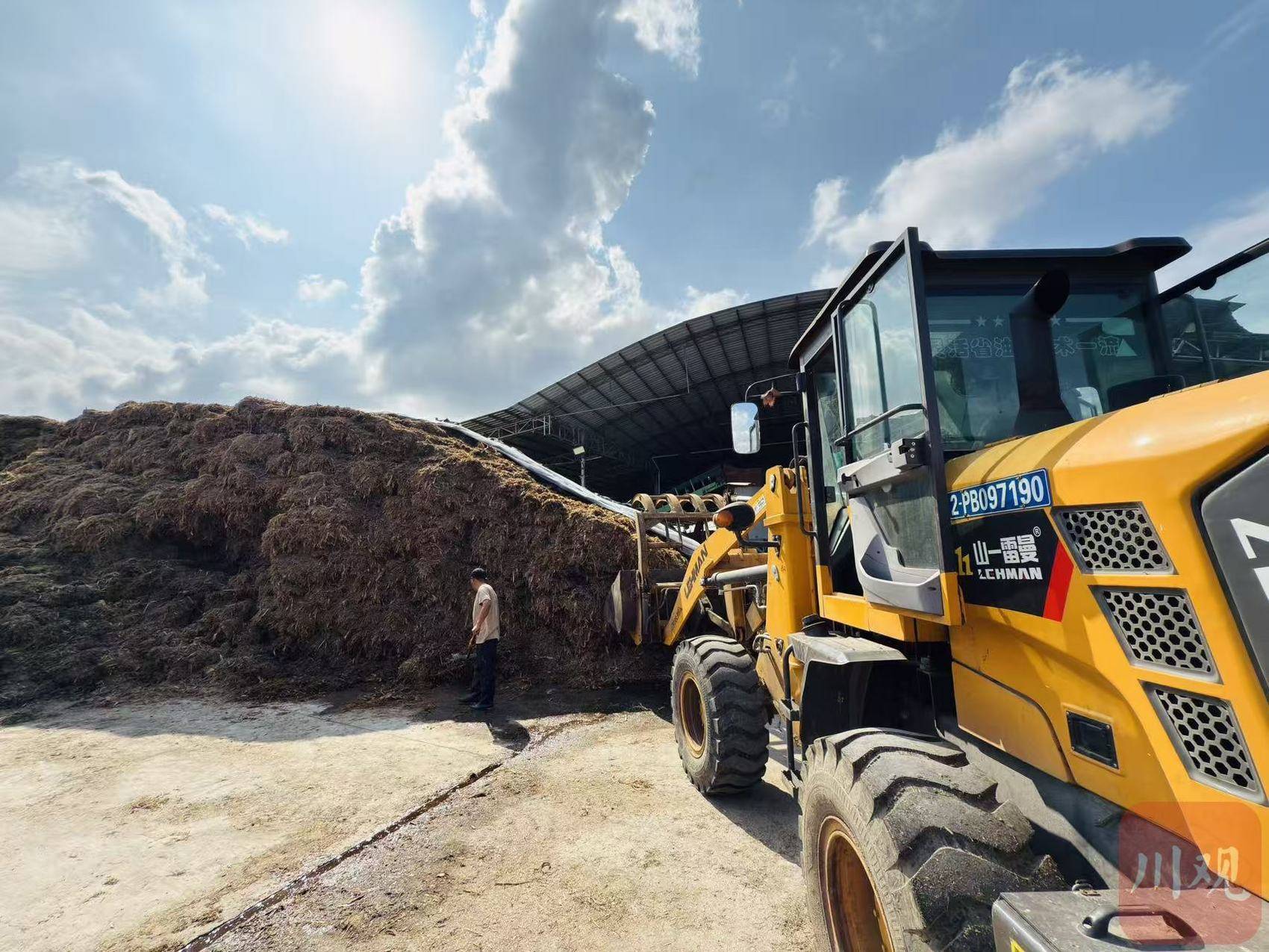 与此景仅一路之隔,凯亿吉农业综合开发有限责任公司(以下简称“凯亿吉公司”)操作间粉碎机轰鸣,铲车、运输货车进出有序。“麦冬、玉米秸秆经过破碎、发酵、打包,变成青贮饲料,装车发往省内外的养殖场。”公司总经理寇永江指向一辆满载饲料的货车,语气笃定,“我们最近每天都要向这家成都双流的农业公司出货30多吨,需求源源不断。”