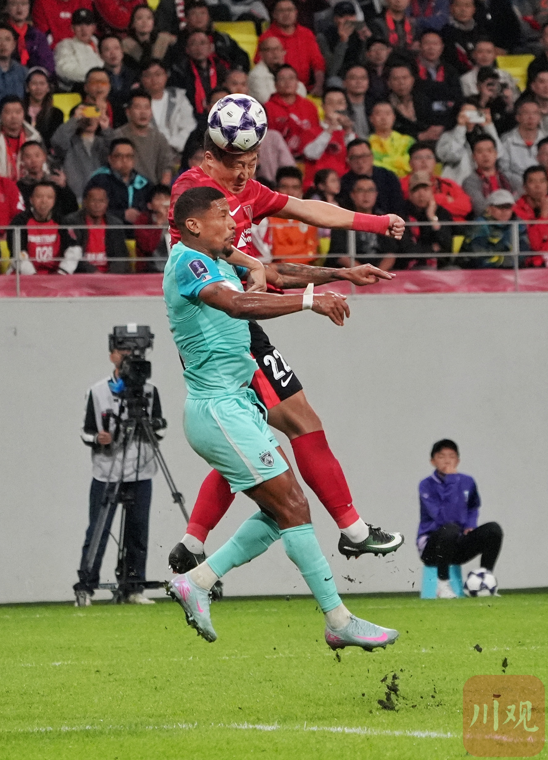 双方在中场争抢头球。(红衣成都蓉城队员)。