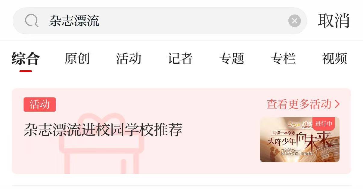 方式三:在川观新闻首页顶部搜索框输入“杂志漂流”,点击活动链接即可参与报名。