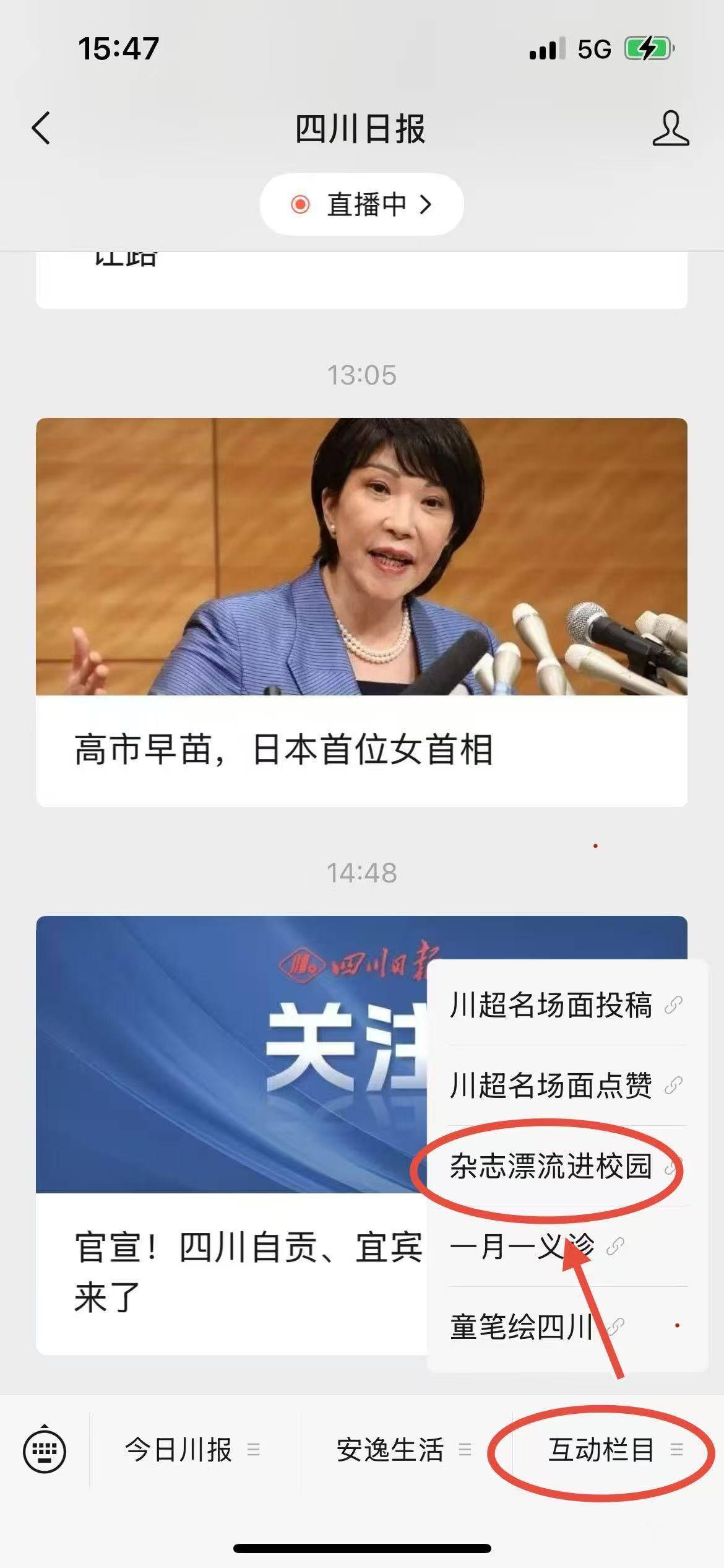 第二步:打开川观新闻客户端,您可以通过以下两种方式找到“杂志漂流”报名通道: