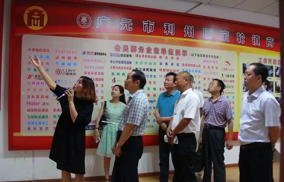 赵洪艳(左一)与工商联代表人士对宝轮商会矛盾调解工作开展交流活动